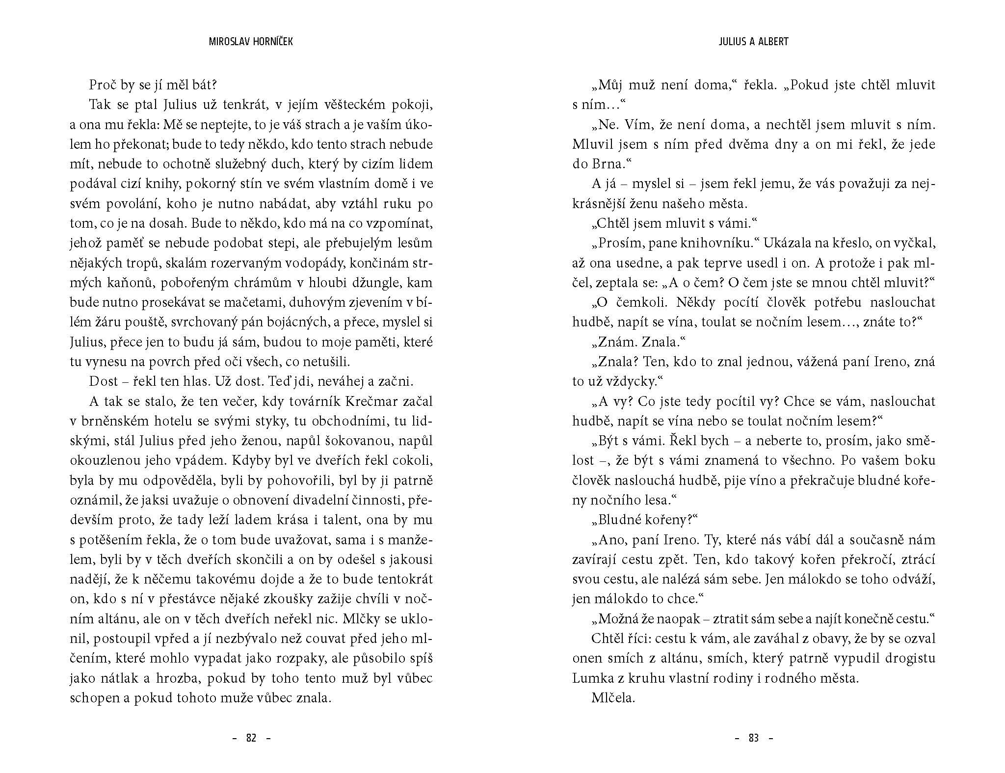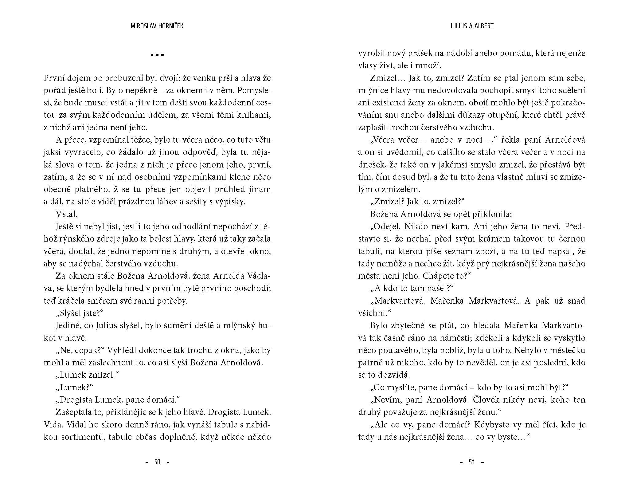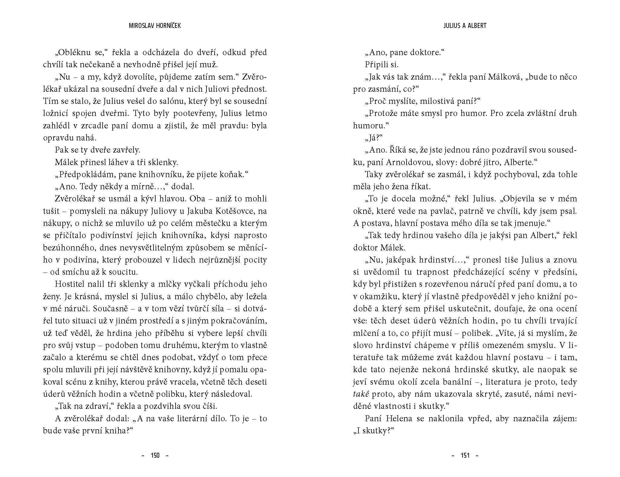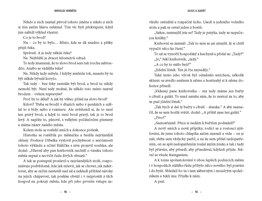 Humoristický román zasloužilého umělce Miroslava Horníčka vypráví o tom, jak se nenápadný staromládenecký knihovník Julius z Levého Brodu na prahu padesátky ztotožnil se slavným francouzským spisovatelem Albertem. Povzneste se společně s tímto pozoruhodným dvojhrdinou nad všednost každodenního života a prožijte s fascinující milostné i tvůrčí napětí! Buďte svědky barvitých dějů v Levém Brodě, Riviéře či Normandii.