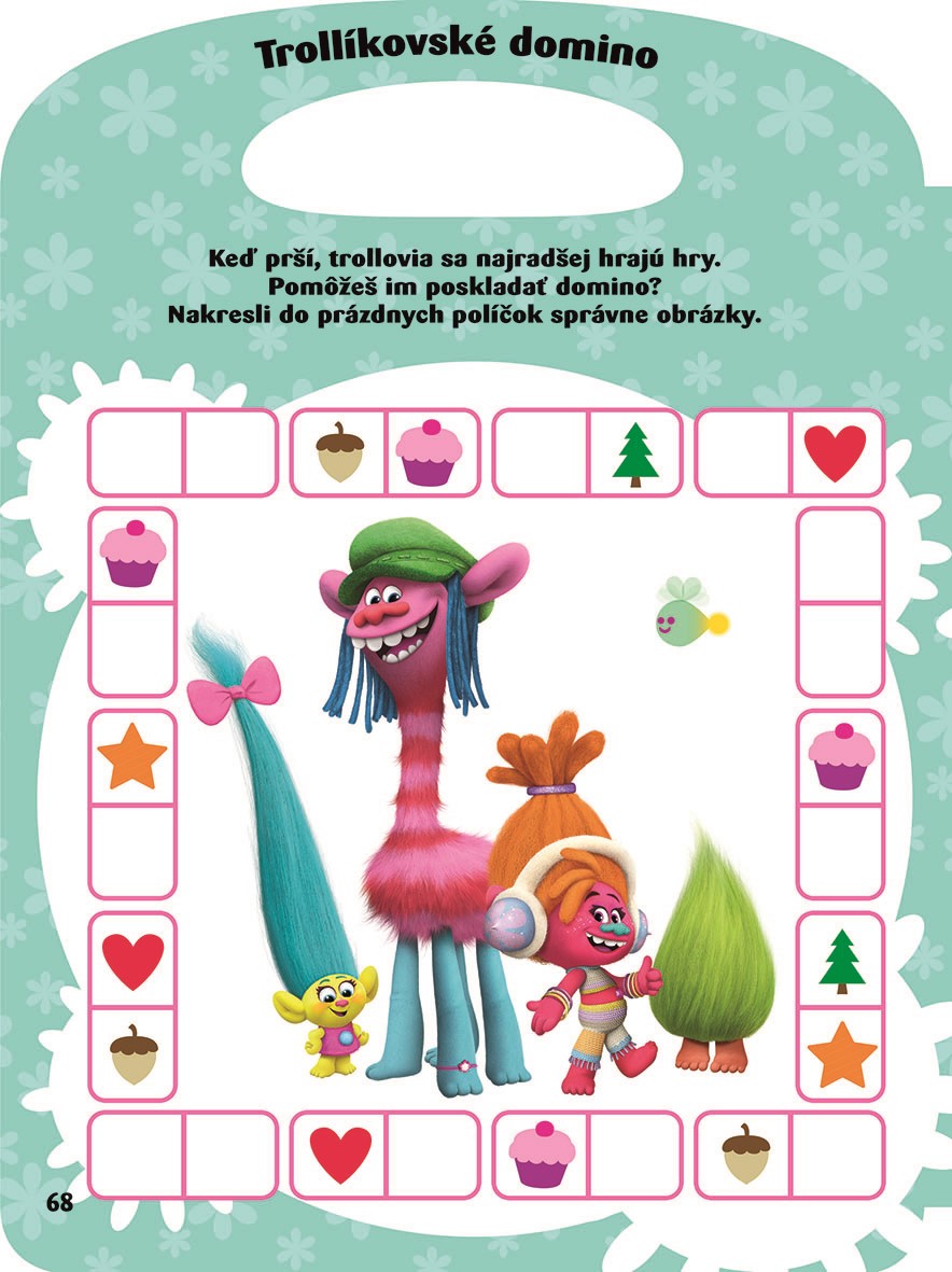 Knižka plná skvelých hádaniek, veselých samolepiek, krásnych obrázkov, zaujímavých doplňovačiek a ďalších úloh zo sveta trollov z filmu spoločnosti DreamWorks. Stačí ju vziať do ruky a o zábavu na cestách je postarané!