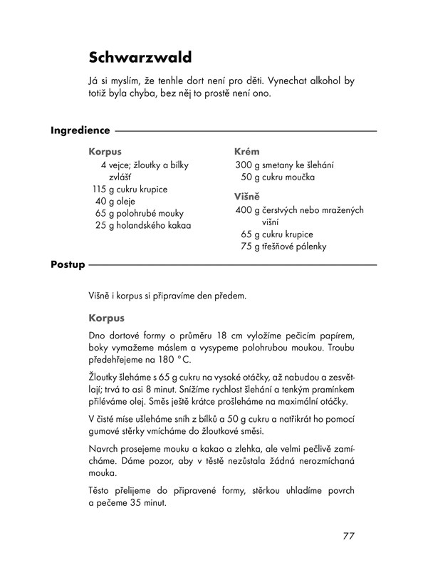 A aké recepty v knihe nájdete? Torty (Vianočná torta s perníčkami, mrkvová torta s orechmi, makovo-citrónová torta či dúhová torta,…), cheesecaky s bazovým kvetom a citrónom alebo s limetkami. Rôzne francúzske recepty ako napríklad Paris-Brest, Éclairs či makronky. Nájdete tu aj klasiku v podobe sacherovej či schwarzwalskej torty. A ešte mnoho iných. Ku každému receptu je aj krásna fotka, vďaka ktorej určite dostane chuť na sladké.