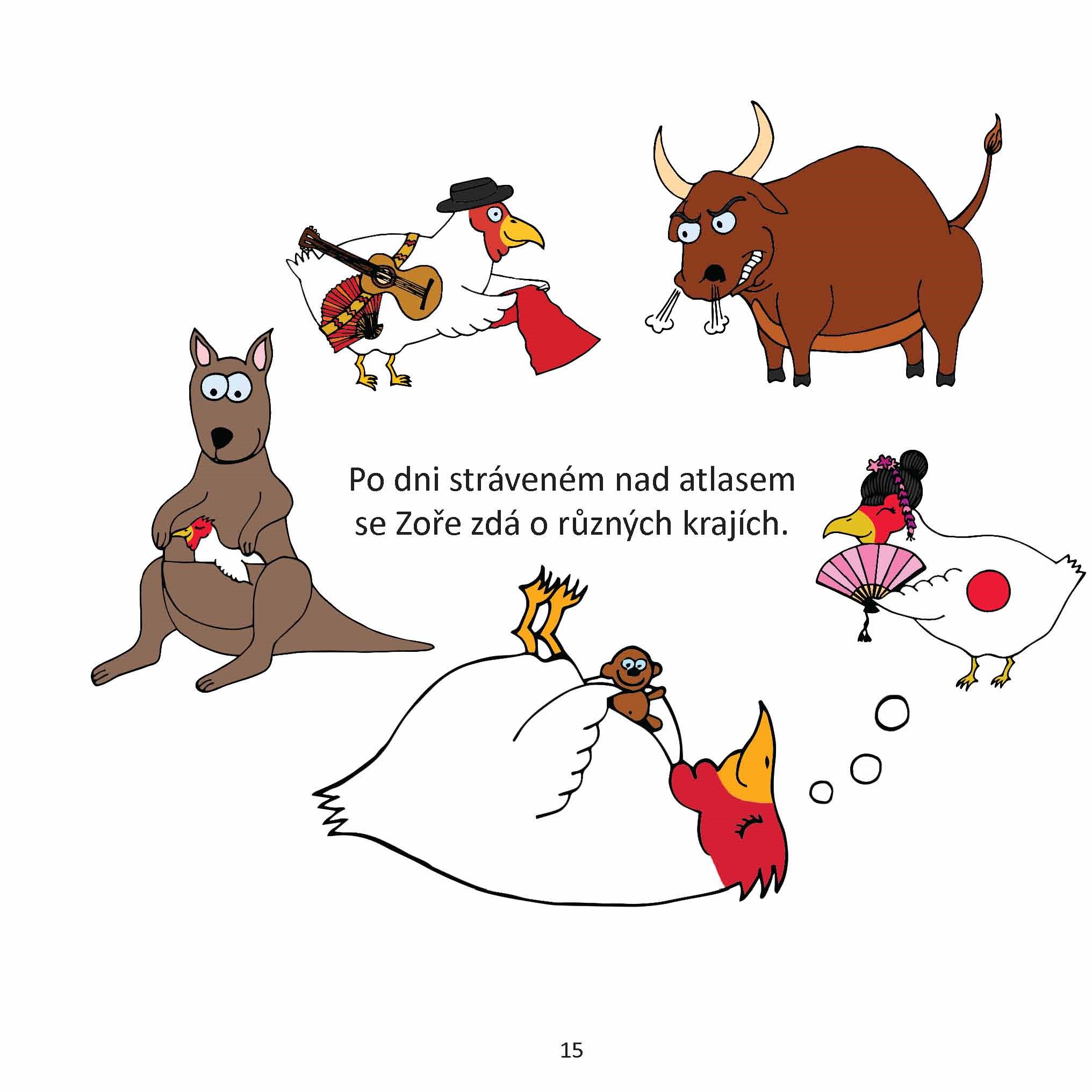 Zora není jen tak ledajaká slepice. Ráda cestuje, čte – a hlavně sní. Zora je dětem představena v mnoha podobách: jako krmička čínských draků, toreadorka, řešitelka Rubikovy kostky nebo potápěčka v Pacifickém oceánu. Knížka není jen o cestování, ale také o umění zažít dobrodružství díky své vlastní fantazii, o umění být spokojen s tím, co je momentálně možné, a také o lásce k domovu.