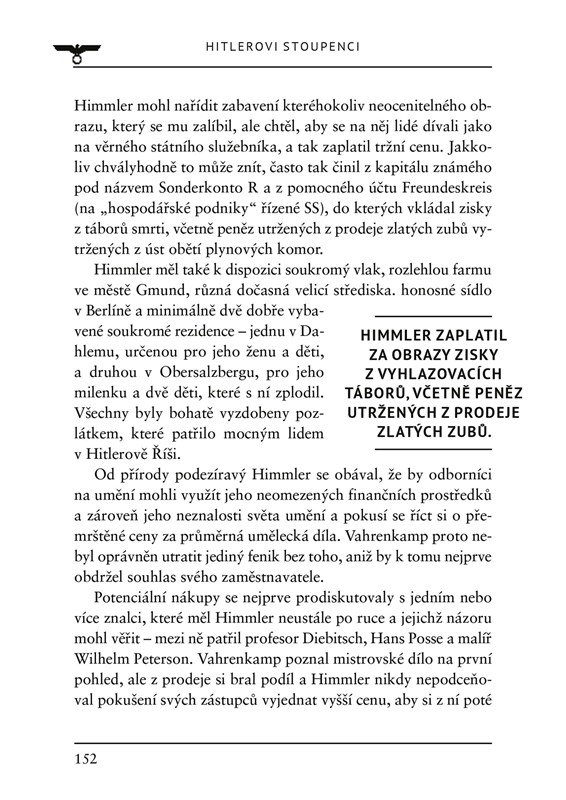 Adolf Hitler a další nacističtí pohlaváři se spikli, aby spáchali jedny z nejohavnějších zločinů v historii, a zatímco požadovali, aby němečtí občané přinášeli oběti válečnému úsilí Říše, oni sami si žili život plný privilegií a moci. Z dobytých území rabovali ty nejcennější umělecké skvosty do svých soukromých sbírek, loupili židovský majetek, utráceli horentní částky za luxusní rezidence i zástupy milenek, užívali drogy… To vše pod vnější fasádou oddanosti Vůdci a Německu. Tato kniha přináší jedinečný vhled do soukromých životů lidí, jako byli Hitler, Göring, Himmler, Bormann, Goebbels, a dalších prominentních nacistů, ale nejen to. Zasazuje jejich životy do historických souvislostí i celého rámce tehdejšího nacistického režimu – zločinného, bizarního a skrz naskrz zkorumpovaného.