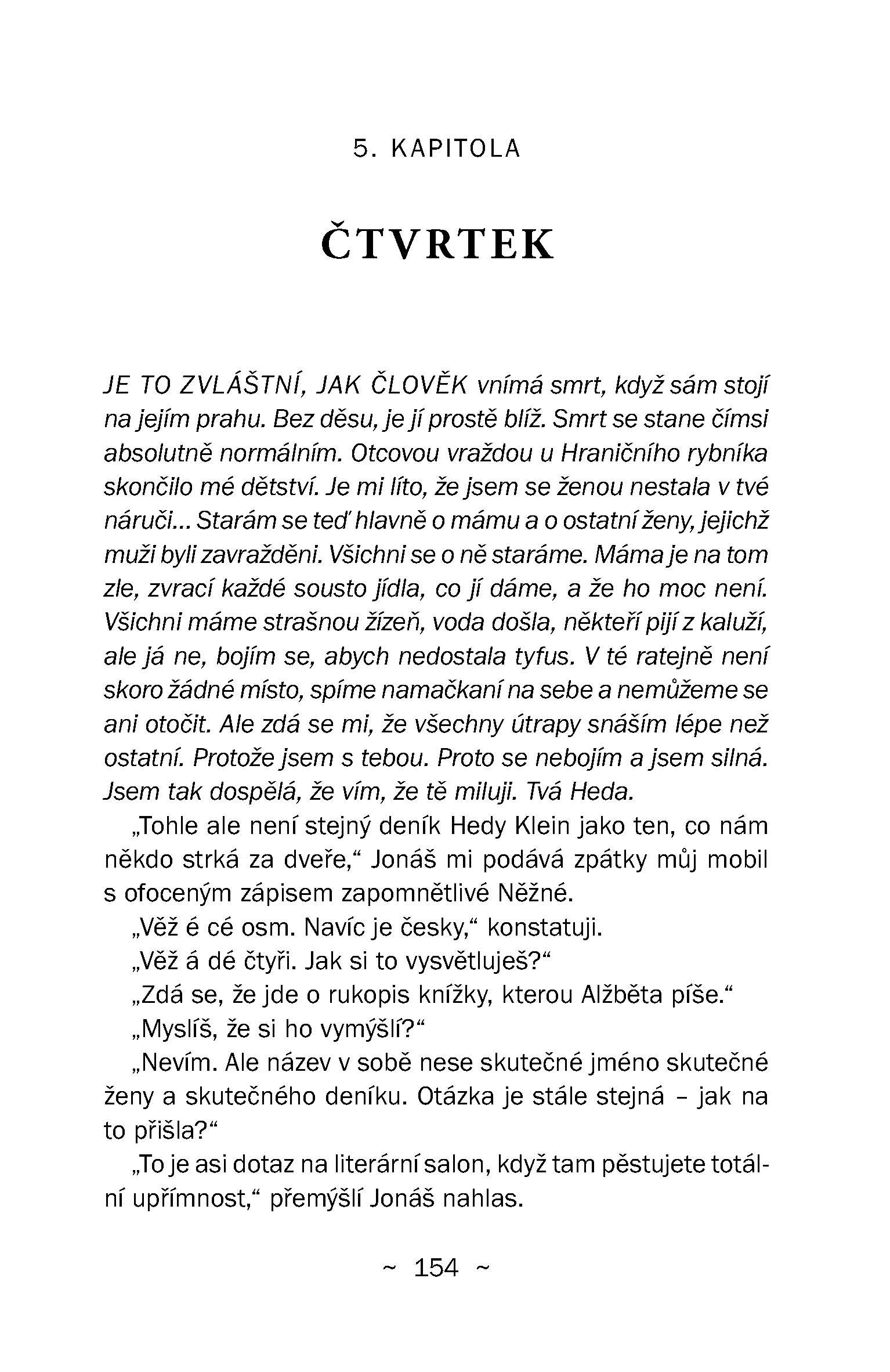 Alice začne navštěvovat Literární salón Alžběty Něžné, která se snaží porozumět řeči ptáků a dávno už není úspěšnou spisovatelkou. Alžběta od svých žáků požaduje totální upřímnost. Alice na jejích salónech potkává několik zajímavých žen, z nichž se každá ocitla na důležitém životním rozcestí. Chodí sem také malíř Lůďa z místního blázince. Dozví se Alice z povídek účastnic literárního salónu, kdo je vrah či vrazi? Začne Alžběta Něžná rozumět řeči ptáků a stane se konečně jasnozřivou? A co to vlastně píše za knihu?