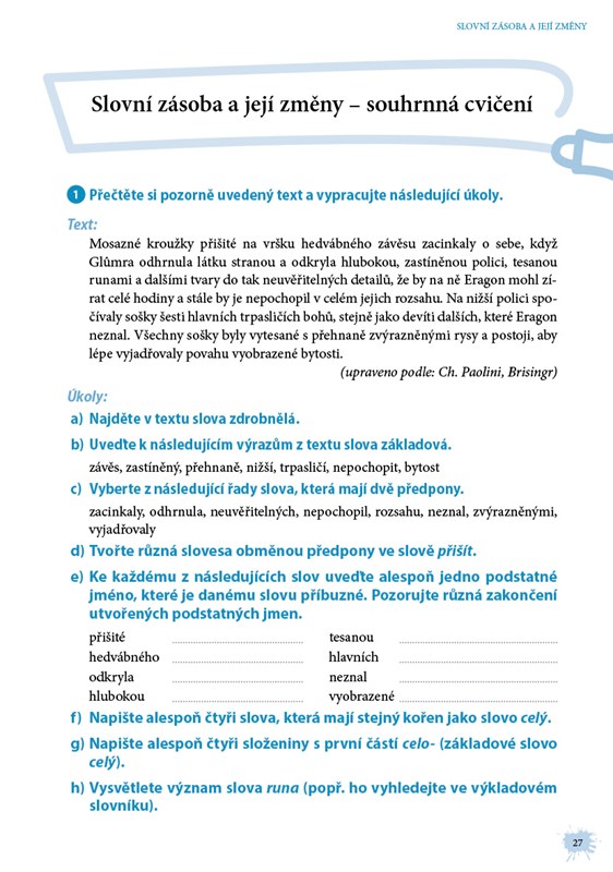 Cvičebnice vychází z konceptu knižní řady Od šestky do devítky – Český jazyk stručně a přehledně.