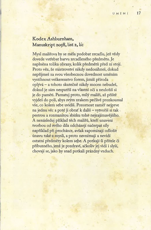 Všechny texty jsou opatřeny českým překladem, abyste se mohli do úvah všestranného myslitele a uměleckého génia ponořit také vy.
