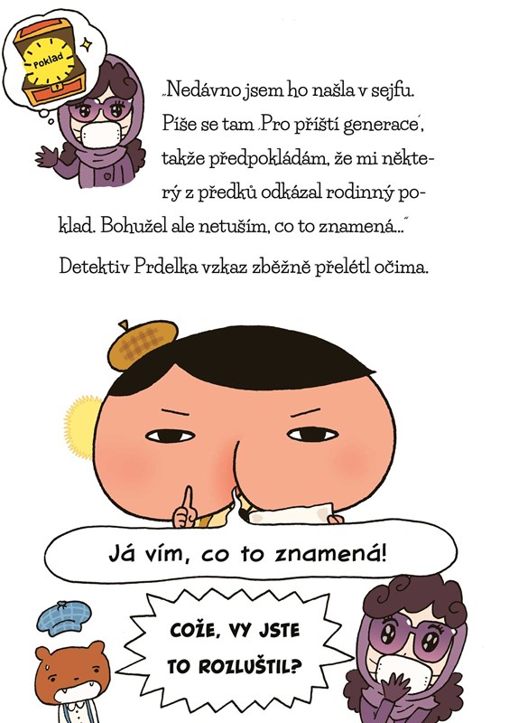 Ahoj! Těší mě, jsem detektiv Prdelka. Ač na to možná nevypadám, ve svém oboru jsem docela hvězda a v ničem si nezadám se svými slavnějšími kolegy Herculem Poirotem nebo Sherlockem Holmesem. Na rozdíl od nich jsem však také zapáleným učitelem, a tak ode mě při řešení