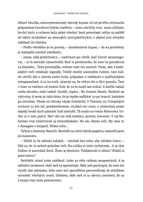 Andrzej Sapkowski v tomto samostatnom románe vracia na scénu svojho najpopulárnejšieho hrdinu. Zaklínač putuje, bojuje s netvormi, intrigánmi a zločincami a nad jeho fantastickým svetom sa zatiaľ sťahujú temné mračná – prichádza búrková sezóna.