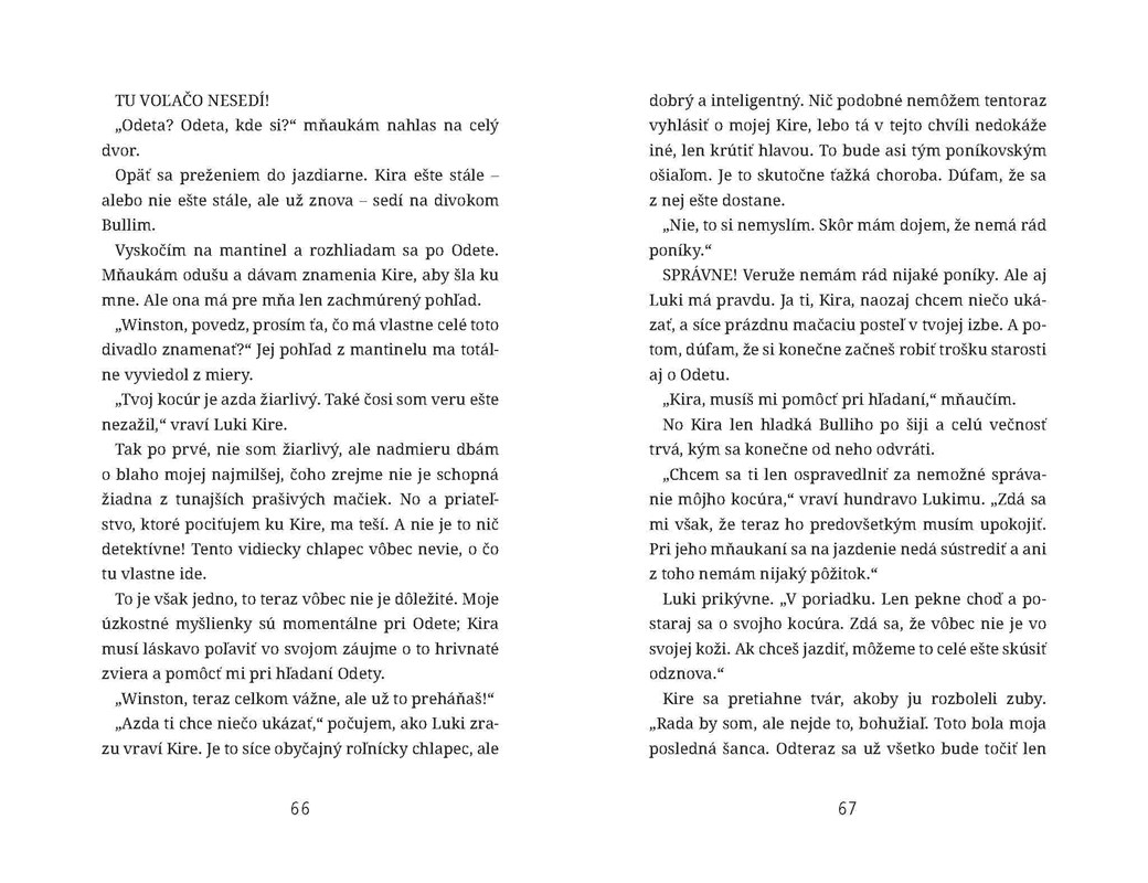 Konečne sa Anna a Werner budú brať! Svadba sa koná na idylickom dvore s poníkmi a Kira, Winston a jeho najmilšia mačka Odeta idú s nimi. Kira sa od poníkov nepohne ani na krok, a to sa Winstona nesmierne dotkne. Urazený sa presťahuje k mačkám z dvora. Ktosi však unesie Odetu a už je Winston zapletený do ďalšieho prípadu. Aby ho vyriešil, musí dokázať nemožné a definitívne ukončiť celé tisícročia trvajúci spor medzi mačkami a myšami!