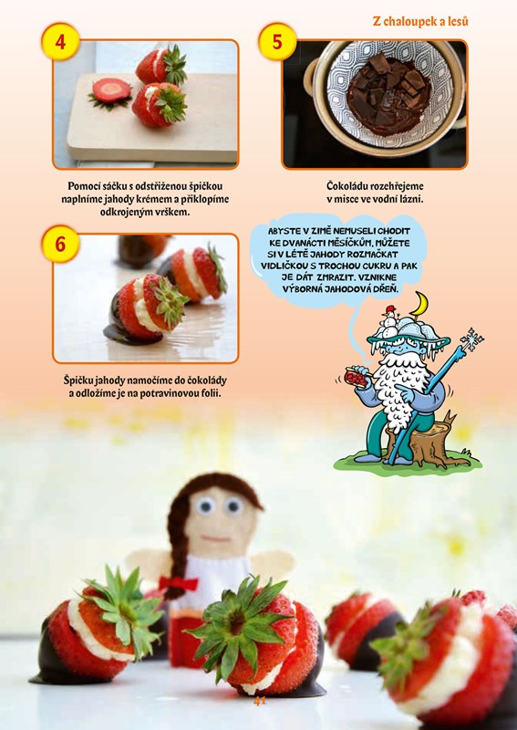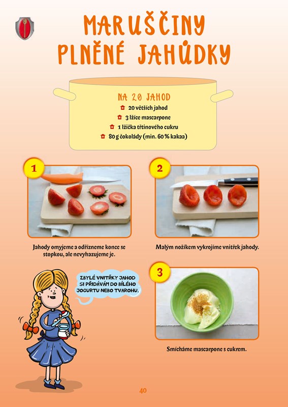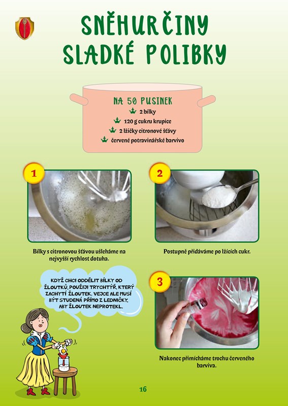 Podávat se budou jak pokrmy přiměřeně slané (chlebíčky, jednohubky, saláty apod.), tak i lahodné sladkosti (cukroví, poháry, dortíky, koláče apod.) a chybět samozřejmě nebudou ani osvěžující nápoje. Nemějte obavy, protože všech 24 receptů na dobroty s pohádkovou tematikou je opatřeno jednoduchým fotonávodem „krok za krokem“, díky kterému vše hravě zvládnete připravit sami nebo s malou pomocí dospěláka.