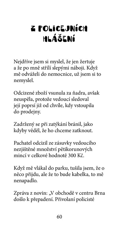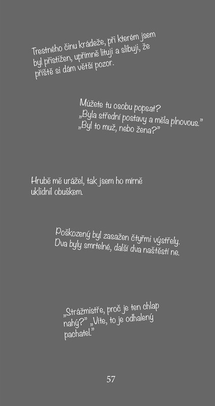 Velikostí se knížka vleze do kapsy, takže můžete studnici humoru mít neustále po ruce pro případ, že na vás přijde dlouhá chvíle v MHD nebo v čekárně u lékaře.