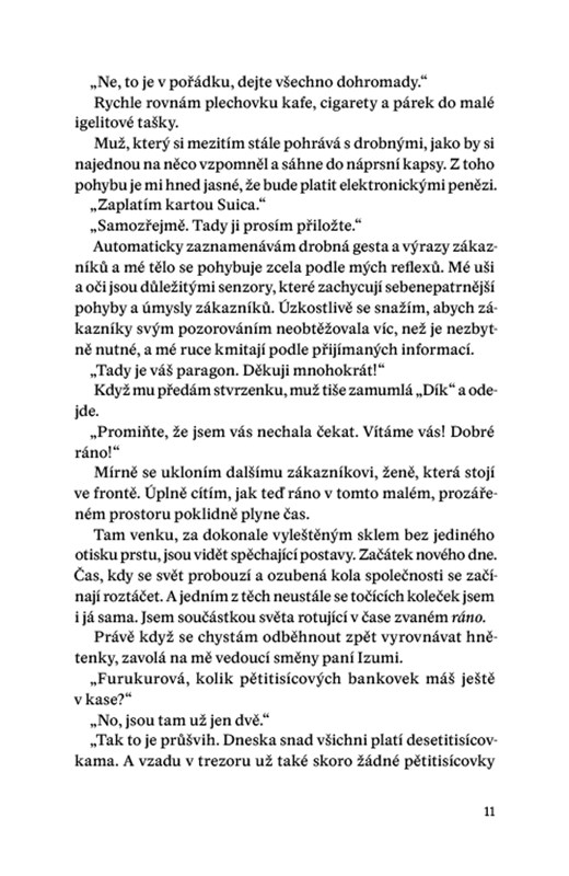 Hlavní hrdina Keiko Furukurová se svým myšlením a jednáním vymyká běžným společenským normám a od dětských let se potýká s problémem začlenění do většinové společnosti. Své společenské místo najde až během studia na univerzitě, kdy získá příležitostnou práci v minimarketu, který otevřeli nedaleko jejího bytu. Je okouzlena dokonalou organizací, přesným popisem veškerých činností od pozdravů po zakládání zboží do regálů i pocitem sounáležitosti všech zaměstnanců. Minimarket pro ni znamená stabilitu, řád a bezpečí v nepředvídatelném a chaotickém světě venku za vstupními dveřmi. Teprve jako zaměstnanec minimarketu se konečně cítí být řadovým a plnohodnotným členem společnosti, nehledě na fakt, že i po osmnácti letech práce má stále jen statut brigádníka.