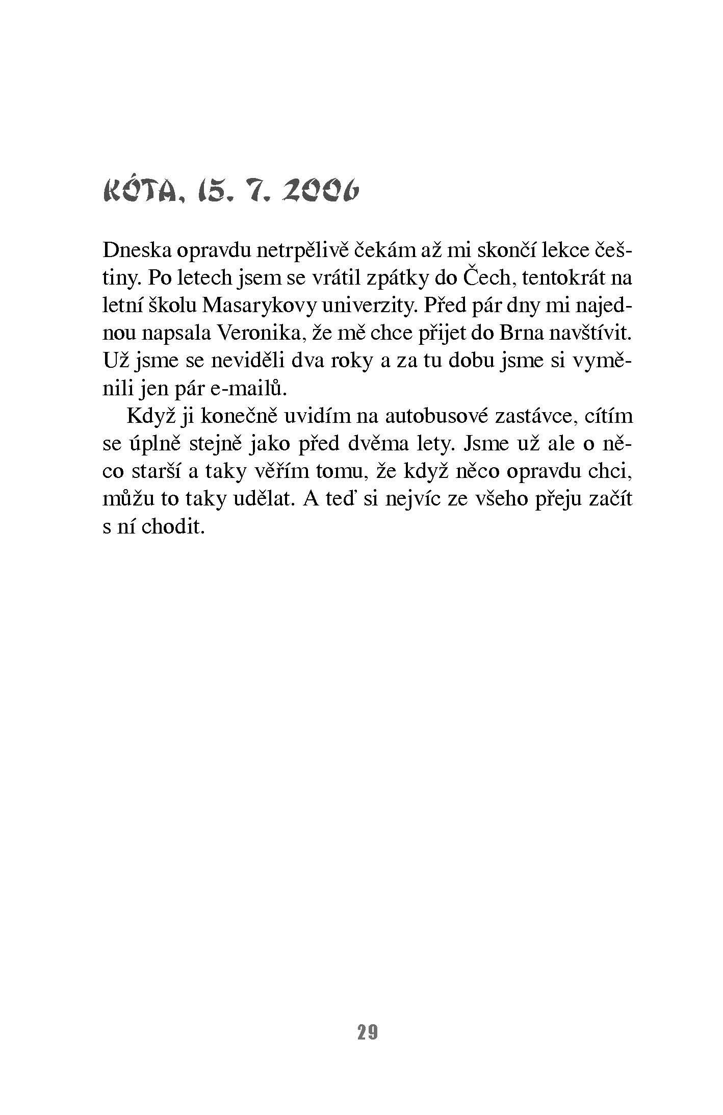 K večeři nám máma udělala specialitku. Rozmočený rýžový žoužel moči v polévce. Zase mi to připadá na hranici poživatelnosti, ale co bych neudělala pro naše budoucí vztahy. Takže do sebe tu žužlavinu statečně soukám. Když už to mám skoro za sebou, dozvím se, že na to občas starší lidé umírají. Prý to pořádně nespolknou a zadusí se. Ale maminka má i osobní historku: „Jednou jsme tu měli na výměně studenta z Ruska. Taky jsem mu uvařila tohle jídlo, ale vůbec to nechtěl a říkal, že to nejde sníst. A vidíš, ty jsi to snědla jako nic. Tak to asi nebude tak špatné, jak mi tvrdil on.“