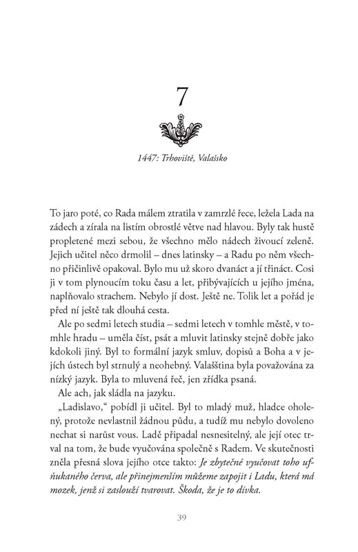 Autorka nás vhodila do príbehu plného kontroverzných postáv, ktoré si svojím spôsobom zamilujete všetky. Hlavná hrdinka Lada zďaleka nebola typická princezná. Nebudem vám klamať, Lada bola monštrum. Ako dieťa neustále robila zle, provokovala, bila sa a ubližovala. Ako staršia robila úplne to isté, len brutálnejšie. Radu bol zase úplný opak Lady, bol to milý, zlatý dobrý chlapec, ktorý nikdy neriskoval, vždy bol utláčaný svojou sestrou, dokonca občas aj obeťou svojej sestry. Lenže aj napriek týmto rozdielnym povahám, Lada a Radu mali medzi sebou neskutočnú chémiu, fantastickú súrodeneckú lásku a vedeli, že jeden bez druhého sú slabší. Takže zároveň ako autorka spravila z Lady monštrum, tak na nej ukázala aj neskutočnú ľudskosť v niektorých situáciách. Lenže ako sa tak zamerala na hlavné postavy, tak zabudla na tie vedľajšie a taký Mehmed alebo Bogdan boli pre mňa len figúrky v pozadí - bez osobnosti, bez nejakého charakteru. Áno, Mehmed bol dôležitý, ale na tak dôležitú postavu bol hrozne plytko spracovaný a nevedel si sám s ničím pomôcť a poradiť. Ostatné postavy však boli neskutočne rôznorodé a nikdy ste nevedeli, kto na akej strane stojí a kto aké tajné plány kuje.