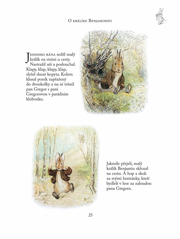 Veselá dobrodružství králíčků Petra, Benjamina, Ocáska, Hoplinky, Pírka či lišáka pana Toda a jezevce Tomyho Broka pobaví všechny malé čtenáře. Příběhy Beatrix Potterové se proslavily se po celém světě a ani po víc než sto letech od svého prvního vydání neztratily nic ze svého půvabu a popularity.