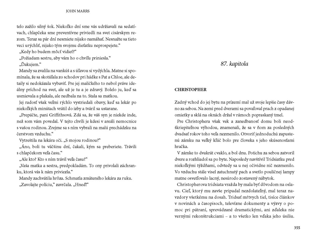 Johnovi Marssovi sa podarilo vytvoriť dokonalý knižný svet, v ktorom potrápil svoje postavy, no tiež aj nás čitateľov. Keď sa raz do tejto knihy začítate, už sa nebudete vedieť od nej odtrhnúť. Tento miestami až desivý príbeh sa Vám dostane pod kožu a je zároveň akýmsi varovaním... Skvelé!