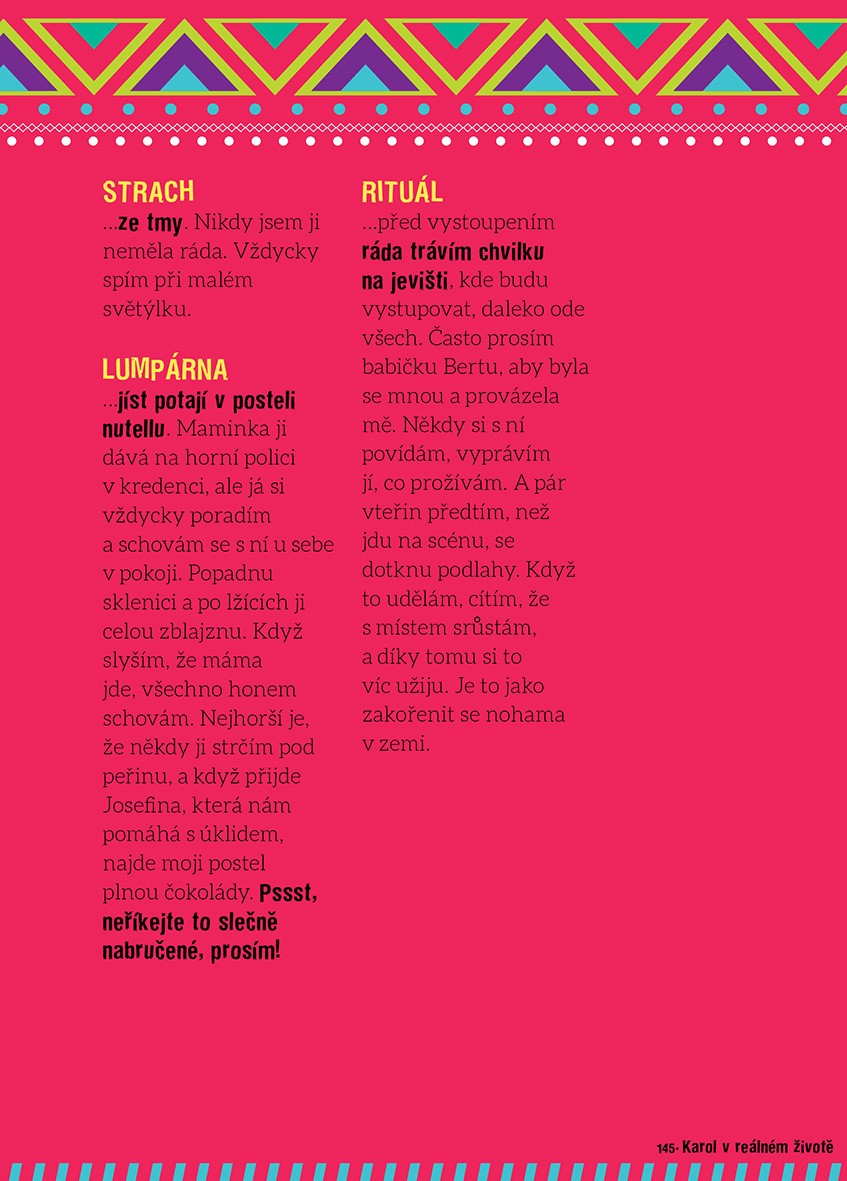 Ahoj, jmenuju se Karol Sevilla a chci vám v téhle knížce vyprávět svůj krátký a supernabitý životní příběh. Chtěla bych popsat celou tuhle bláznivou a skvělou cestu, díky níž jsem se v šesti letech postavila na jeviště a už jsem nikdy nepřestala hrát.