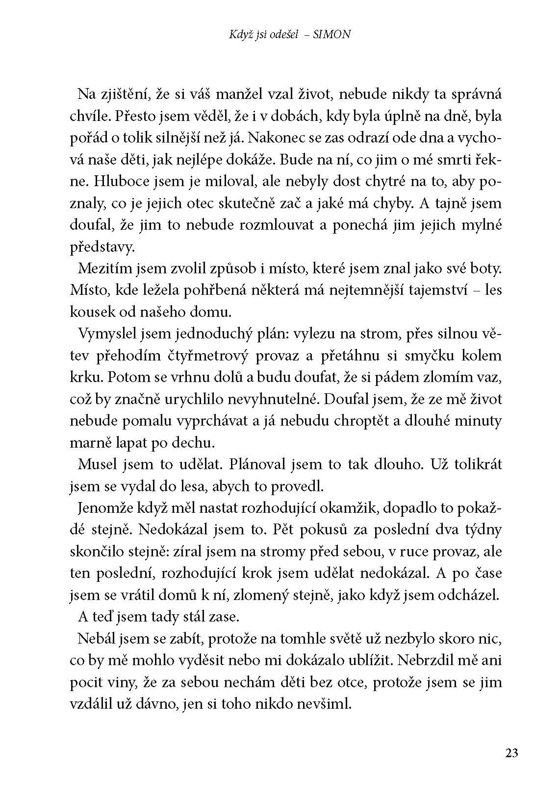 Když se jednoho rána Catherine probudí sama, myslí si, že její manžel si šel zaběhat. Ale Simonovy běžecké boty leží u dveří. Nic nechybí – kromě něj. Catherine ví, že Simon musí mít vážné potíže. Neopustil by jen tak ani ji, ani děti.