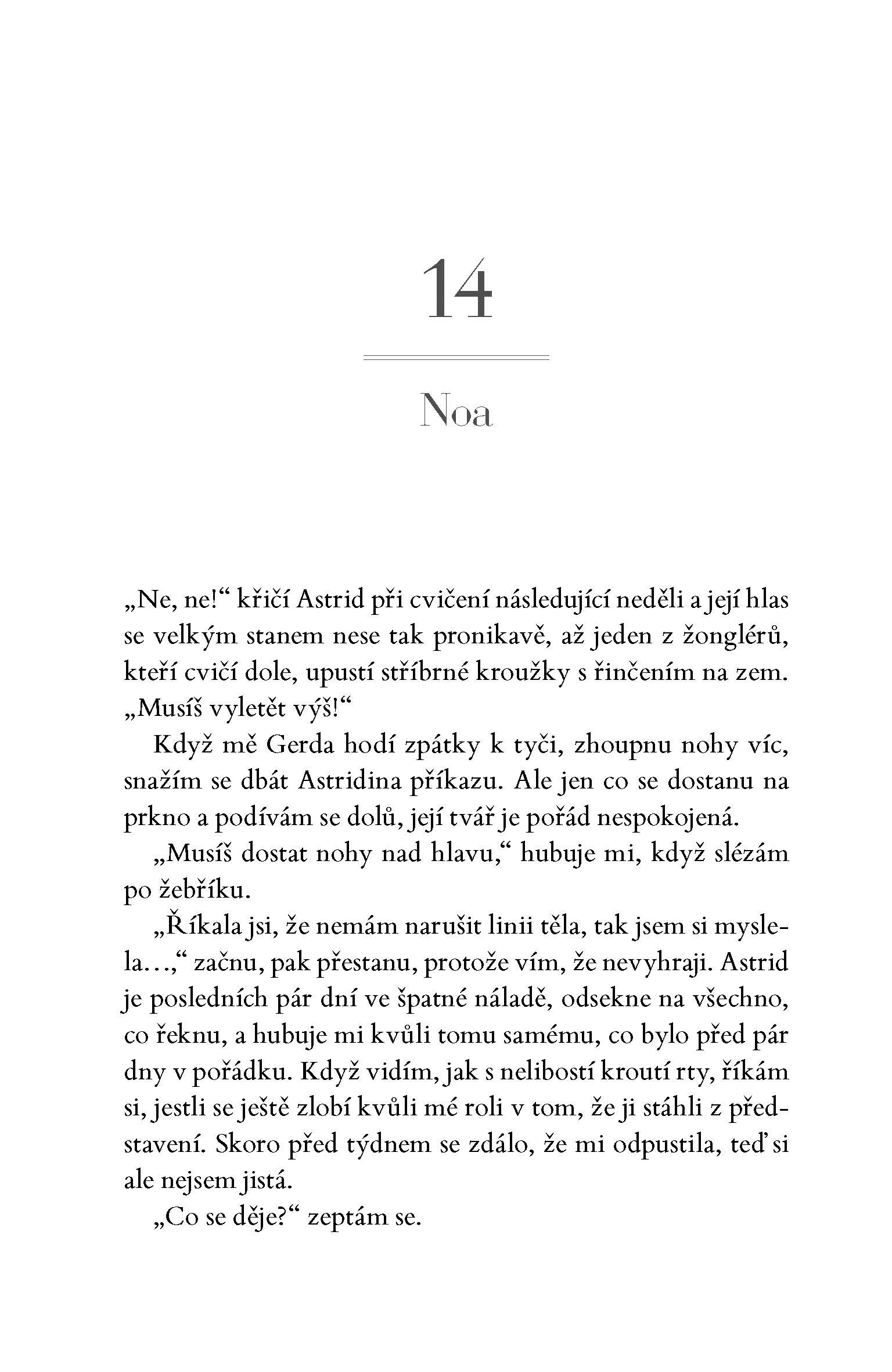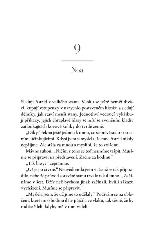 Útočiště nalézá u kočovného cirkusu, kde se musí naučit nebezpečnou akrobacii na visuté hrazdě, aby skryla svou pravou identitu. I přes počáteční neshody se spřátelí s akrobatkou Astrid. Když ale pravda vypluje na povrch, musí se obě rozhodnout, zda je jejich výjimečné přátelství dokáže spasit, nebo jestli tajemství, která ukrývají, vše zničí.