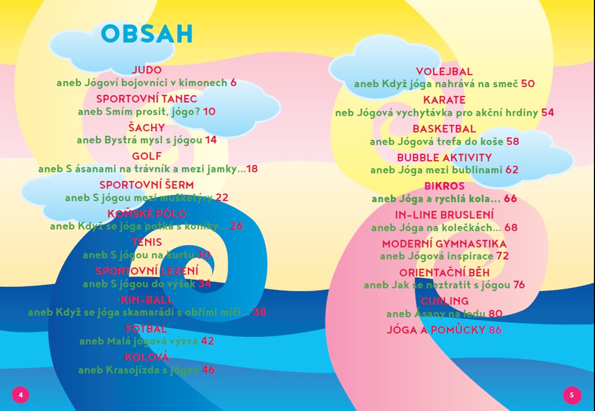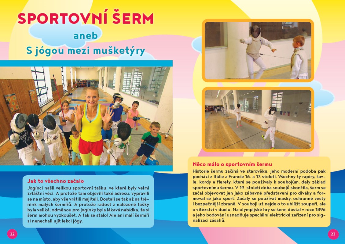 Nová série známého TV cyklu opět vychází v knižní podobě! Jogínci, spolu se svou starší kamarádkou Bětkou, vydávají za nejrůznějšími druhy sportů. A naše knížka ukáže, že jóga může být právě pro sportovce nejen zábavným společníkem, ale také praktickým pomocníkem. Každá kapitola je věnována jednomu sportu, který si jogínci na vlastní kůži zkoušejí, ale především zasvěcují své vrstevníky – sportovce – do tajů jógy. Vybrané ásany jsou vždy šité na míru danému sportu – mohou tak například posilovat určité části těla, kompenzovat přetížení spojená s daným sportem anebo pomoci při soustředění před důležitým závodem, ať jde o orientační běh, fotbal, judo, moderní gymnastiku, šachy či rozličné další sporty.