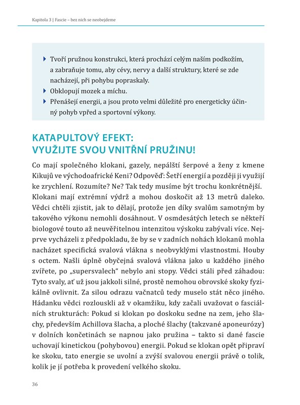 Knížka popisuje sedm jednoduchých principů správné chůze (věděli jste třeba, že máte uvolnit čelist?) a také nejefektivnější cviky, kterými si na procházce nebo doma procvičíte klouby a páteř (co takhle „thajský sed“?). Díky správné chůzi bude vaše tělo dostávat už jen pozitivní impulzy a pohyb vás začne bavit. Zdravé držení těla má vliv i na psychiku – za minimum času si nenáročným pohybem zlepšíte náladu.