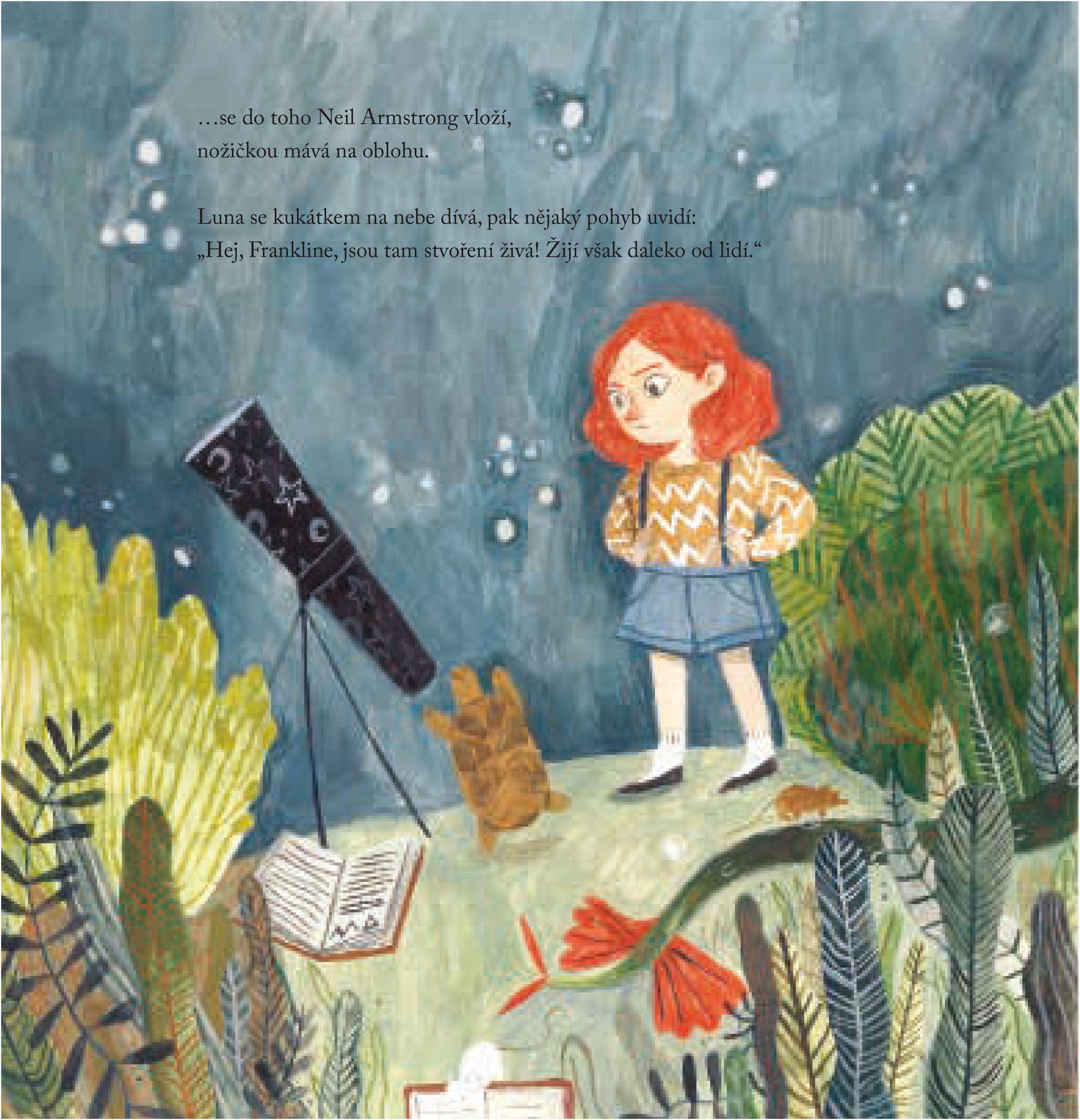 Hledají všude možne, správnou stopu však objeví až tehdy, když si Lunina želvicka, Neil Armstrong, všimne, že se daleko na nocní obloze cosi hýbe…