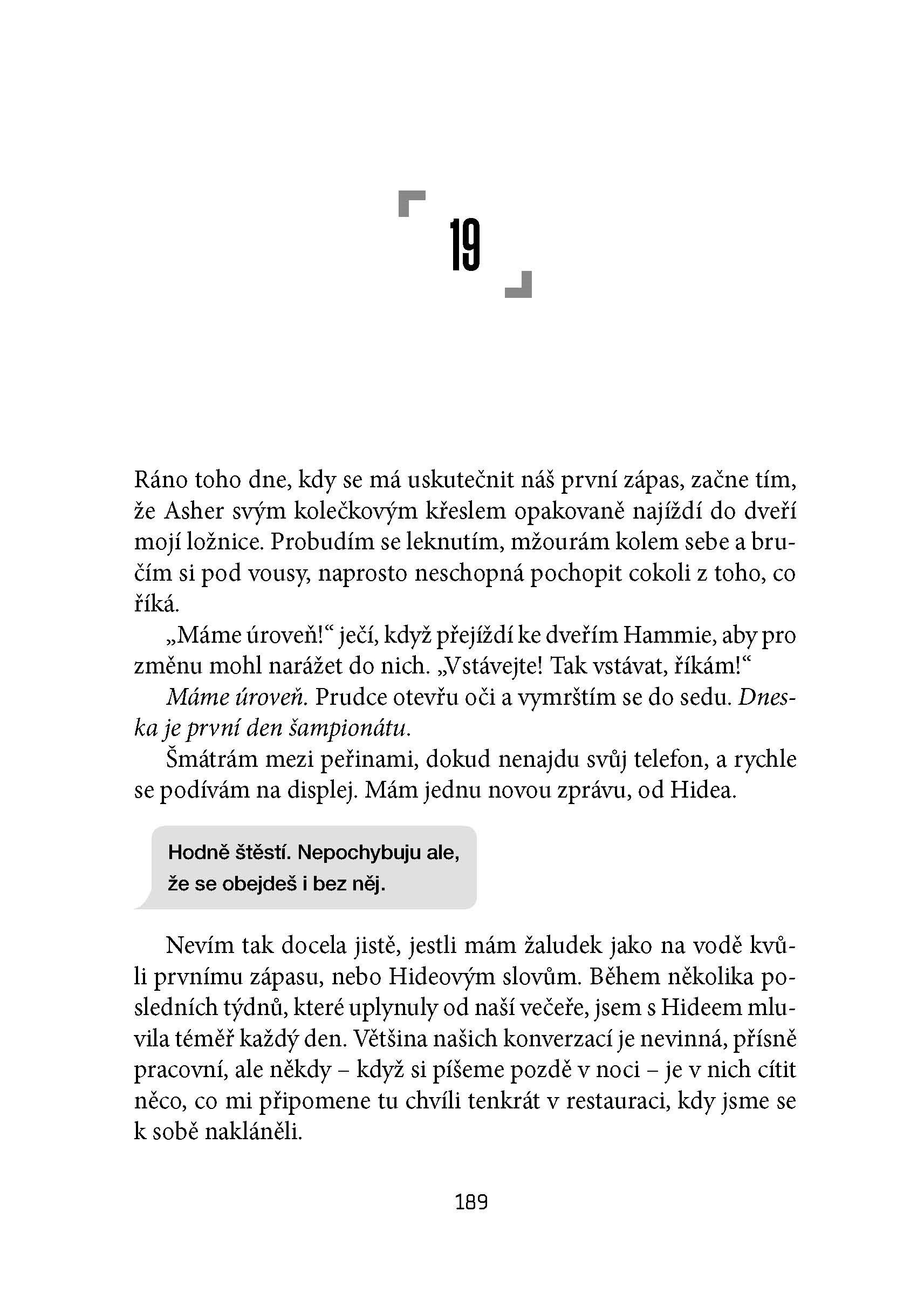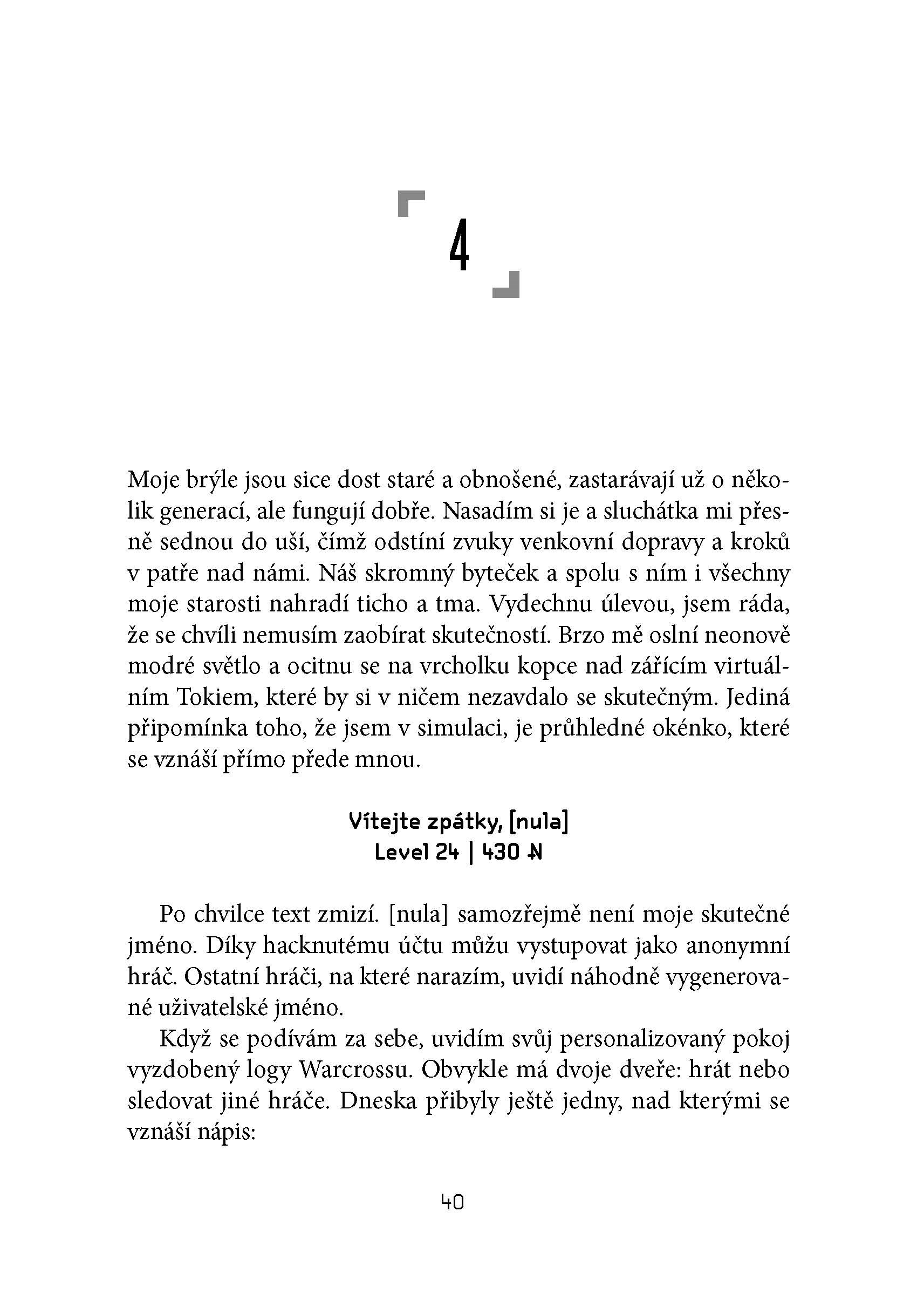 To je vlastne ďalším plusom tejto knihy – budovanie napätia, či už pomocou dynamického deja, v ktorom sa striedajú opisné časti a samotný virtuálny boj, ale aj niekedy nečakaných zvratov a všetko nakoniec vyvrcholí v epickom závere. Kniha je napísaná jednoduchým štýlom a dobre sa číta. Je skvelým vyvážením akcie, opisov aj emócií. Navyše mi ponúkla rôzne zamyslenia nielen nad stavom súčasnej spoločnosti, ale napríklad aj o tom, čo je správne a čo nie. A že aj nesprávne činy urobené zo správnych dôvodov sú stále nesprávne.