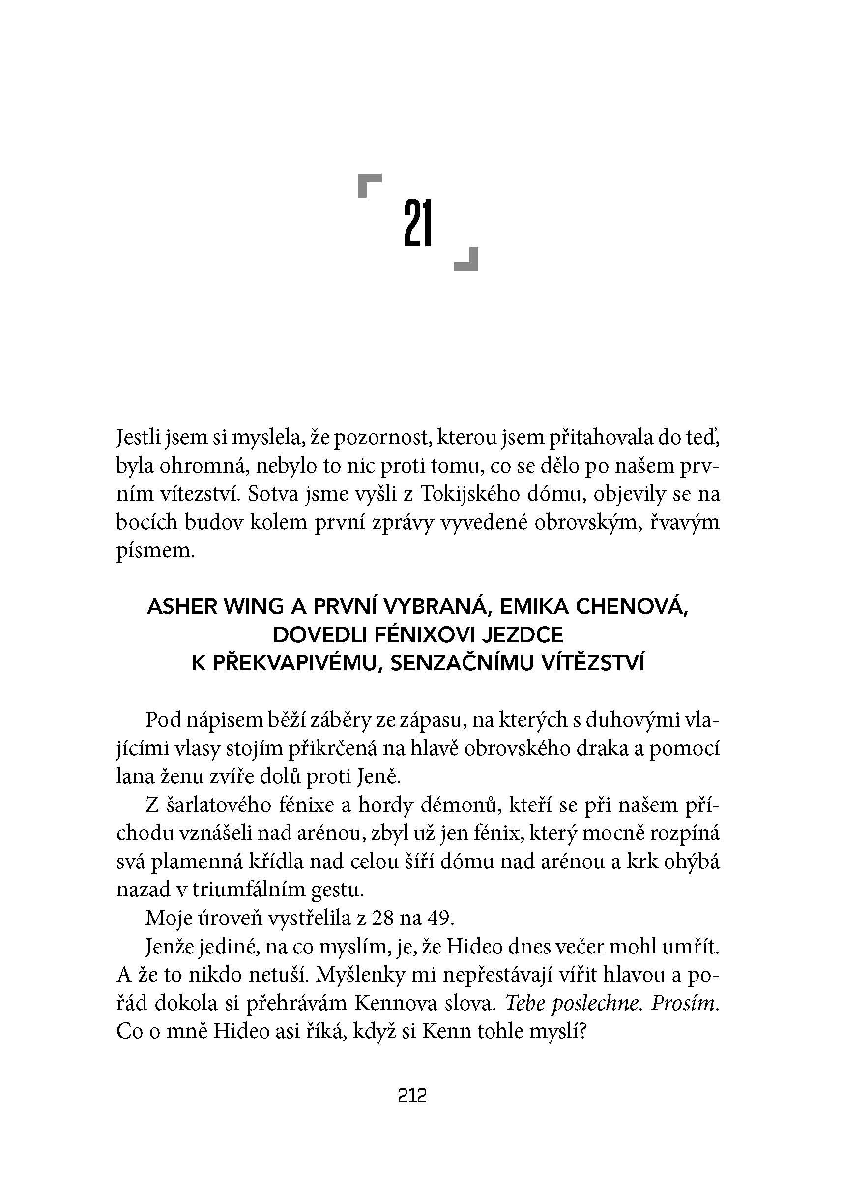 Opisy prostredia, pravidiel Warcorssu, ale aj celého sveta, ktorý radšej žije vo virtuálnej realite, než aby čelil skutočnému životu, sú fascinujúce a dodávajú knihe častokrát prekvapivú hĺbku. Ďalším dôležitým článkom sú aj samotné postavy, ktoré sú rôznorodé a tie hlavné sú opísané v celej svojej nedokonalej kráse. Emika aj Hideo majú svoje prednosti i nedostatky a čo je najdôležitejšie, autorka mi dopodrobna vysvetlila ich motiváciu. Presne som vedela čo robia a prečo, aj keď niektoré ich činy ostali tajomstvom až do samotného záveru.
