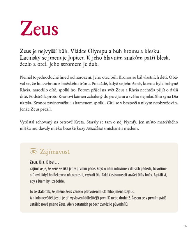 Pokud se chcete dozvědět, jak báje a mýty ovlivňovaly lidem život, pusťte se do čtení. Příběhy bohů olympského pantheonu jsou doplněny popisem různých oblastí každodenního života. Nechybí srozumitelné vysvětlení výrazů, které pocházejí z antiky, ale používáme je dodnes.