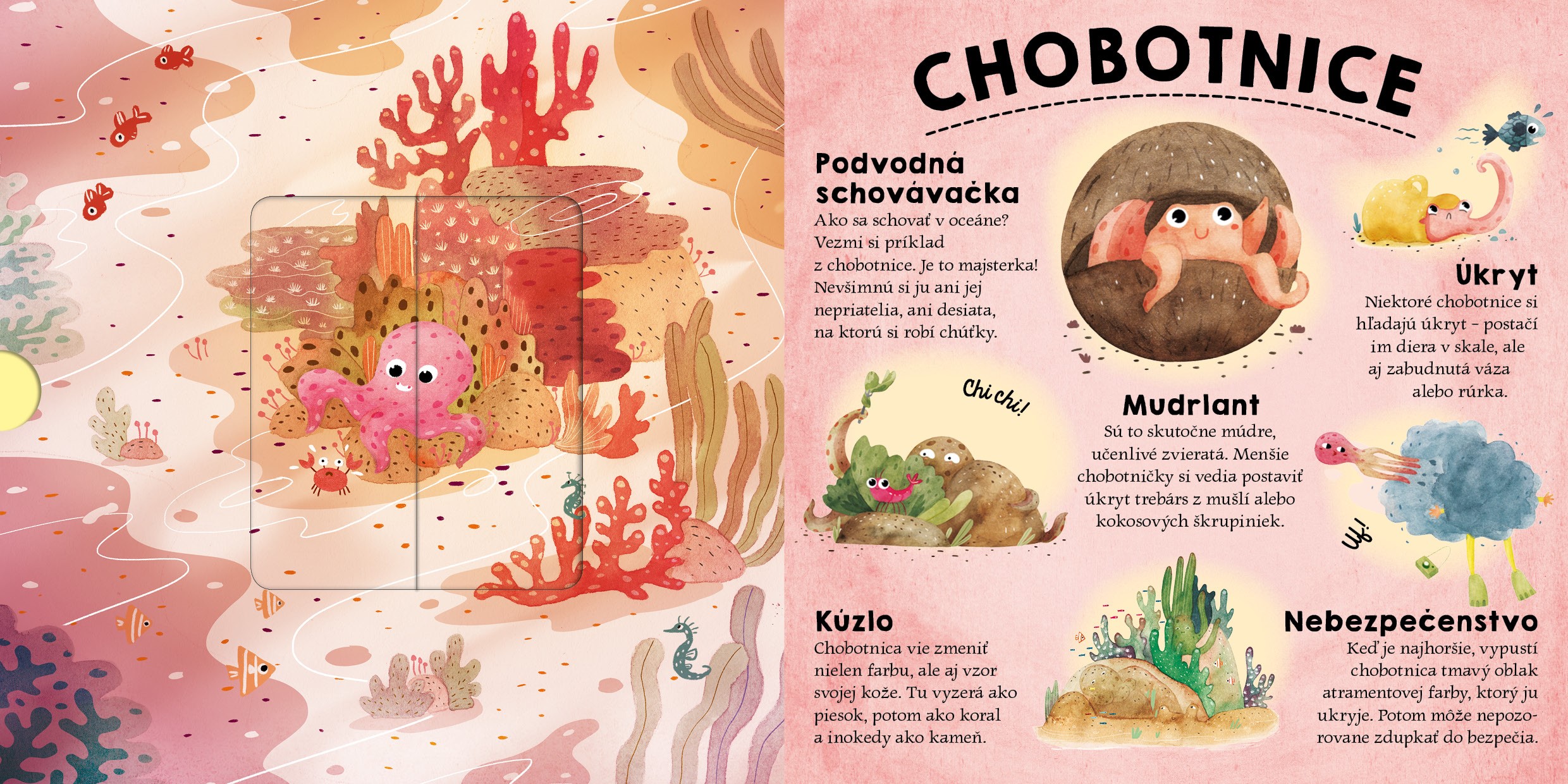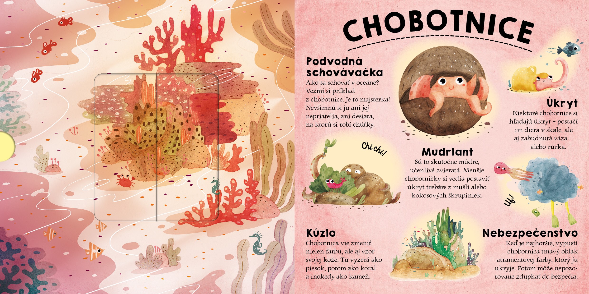 Každý nosí taký kabátik, aký mu narástol. Všimol si si, že zvieratká sú vo svojom prostredí často takmer neviditeľné? To preto, že ich príroda naučila maskovať sa. V púšti, v africkej savane aj pod hladinou mora nájdeš tvory, ktoré sú majstrami v schovávačke. Pozrime sa, či ich všetky nájdeš!