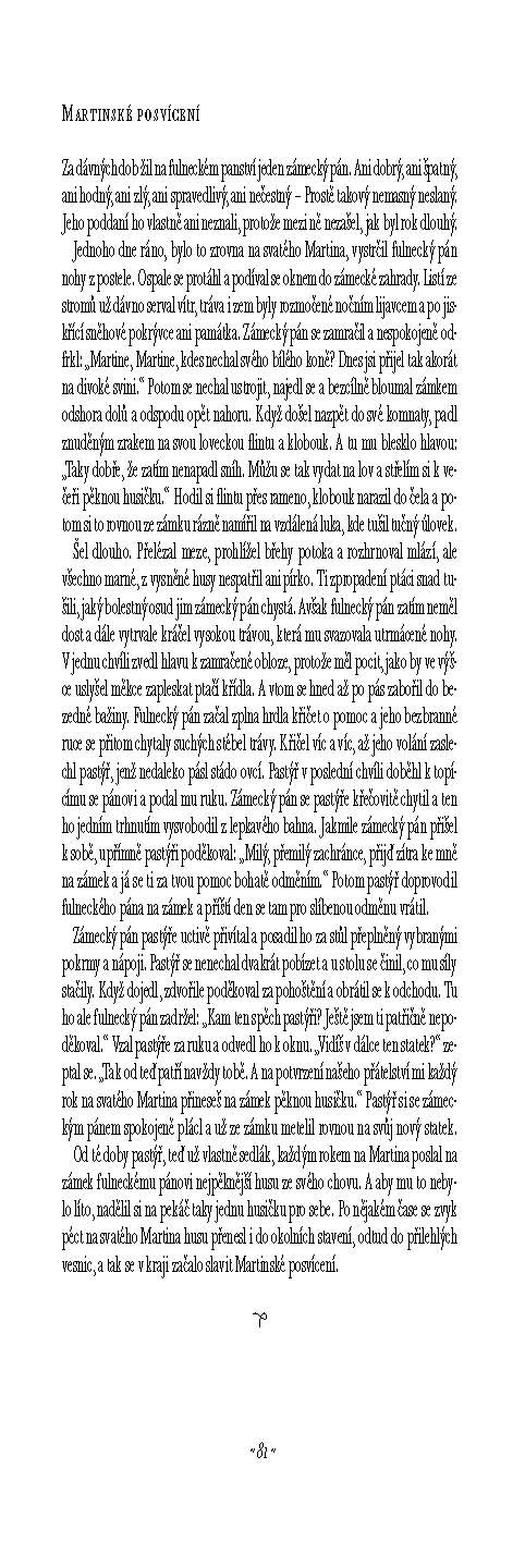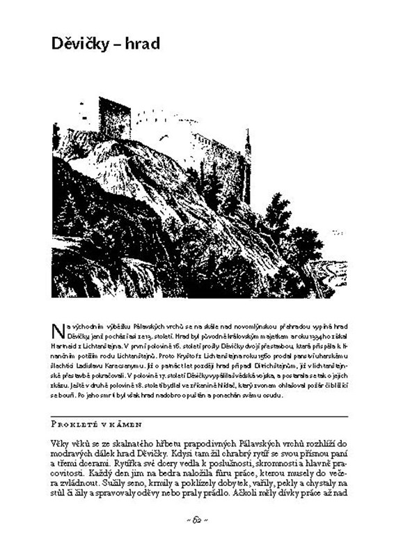 Vydejte se proto i vy na některý z hradů a zámků, s nimiž vás seznámí tato kniha. Jsou zde popsány naše proslulé i méně známé hrady, zámky, tvrze, je uveden jejich historický vývoj až do dnešních dnů i pověsti, které se k místu vztahují. Příběhy, v nichž autorka uvádí o památkách z dávných dob mnoho zajímavých podrobností, jsou zalidněny bájnými i historicky doloženými postavami i nadpřirozenými bytostmi. Pověsti čerpají nejen z klasického fondu, který známe již z Kosmovy kroniky, ale také z pozdějších časů, husitských i rudolfinských. Pestrý kaleidoskop příběhů jistě potěší každého milovníka české historie.