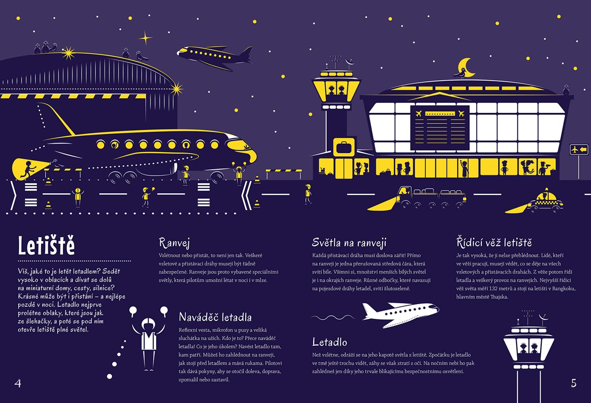 Otevři knihu a prohlédni si město v noci. Co to svítí? Množství pouličních lamp září ve městě tak silně, až rozjasní noční oblohu. Světlo vytvořené člověkem a rozptýlené ve vzduchu má zvláštní jméno. Jaké? I to se dozvíš v této knize. Až budeš se čtením hotov, polož otevřenou knihu přímo pod lampičku. Po pár minutách zhasni. Nasvícená ilustrace se rozzáří ve tmě do všech stran!