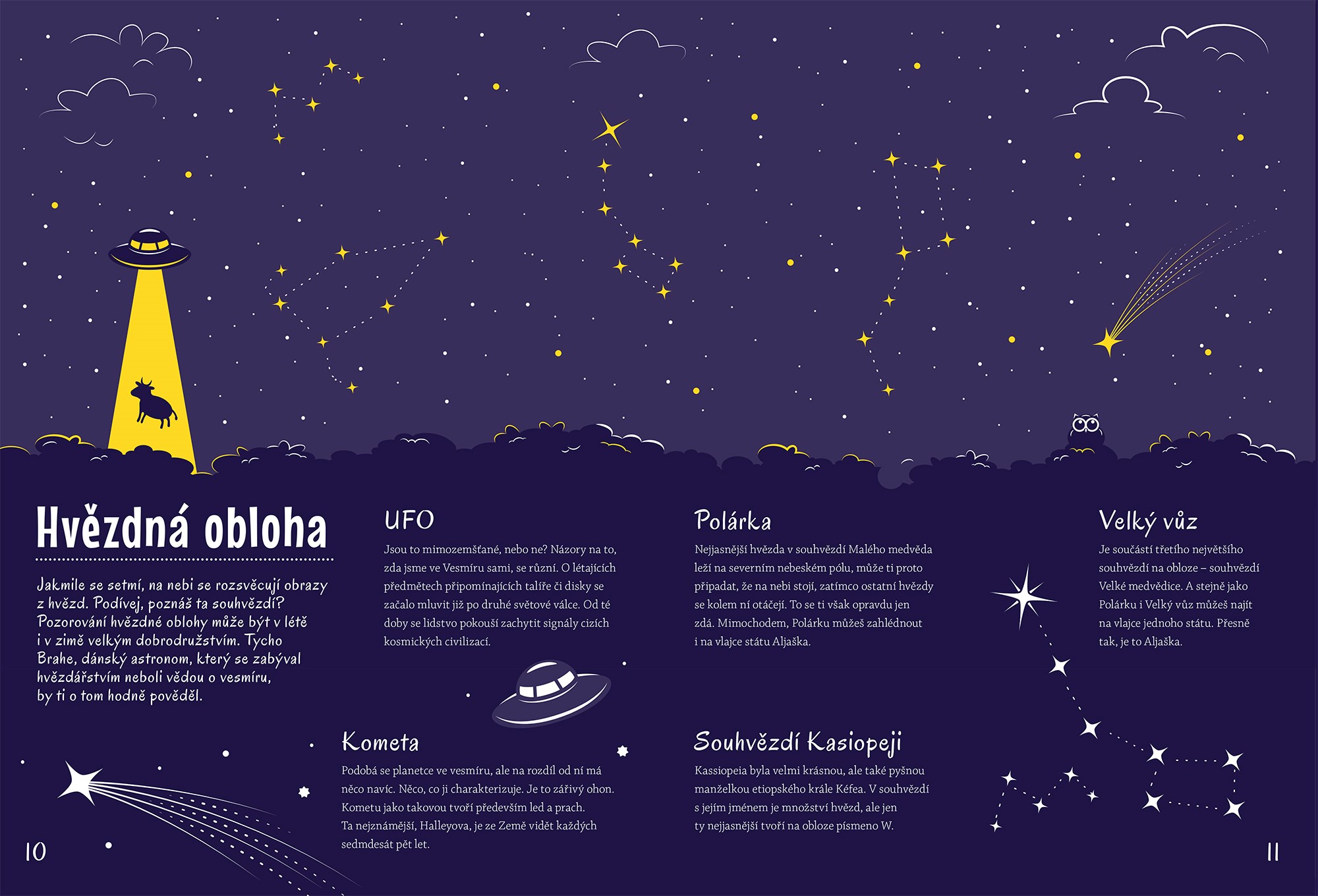 Představ si tmu a v ní jen dvě oči. Kdo se to dívá? Kočka, nebo strašidlo? Světlo, které vydávají různí tvorové v přírodě, fascinuje lidstvo odpradávna. Vůbec nejradši bychom si na ně posvítili – abychom měli ve všem jasno. V této knize zjistíš, co svítí v lese, na nebi i pod vodou nebo jak vypadá planeta Země v noci. Až dočteš, polož otevřenou knihu přímo pod lampičku. Počkej pár minut a pak zhasni. Cvak! Nasvícená ilustrace se rozzáří ve tmě do všech stran!