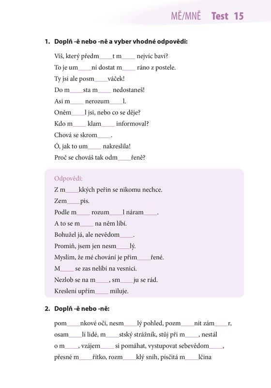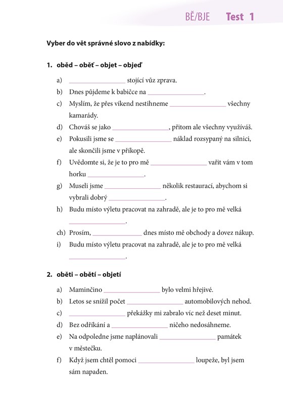 Nejste si jistí? Pak jsou Desetiminutovky určeny právě vám! Občas se v knize setkáte s úsměvnou větou, vtípkem nebo se potěšíte obrázkem, ale čeká vás především spousta materiálu na procvičení BJE, VJE, BĚ, PĚ, VĚ + MĚ, MNĚ. Vyplňujte jeden list po druhém, anebo na přeskáčku. Vytrhejte jednotlivé listy a zkoušejte si testy třeba v tramvaji, anebo je nechejte v knížce, jak je libo. A nakonec si z listů poskládejte třeba vlaštovku a vypusťte ji radostně do světa. Vyberte si zkrátka způsob, jaký je vám při učení nejpříjemnější!
