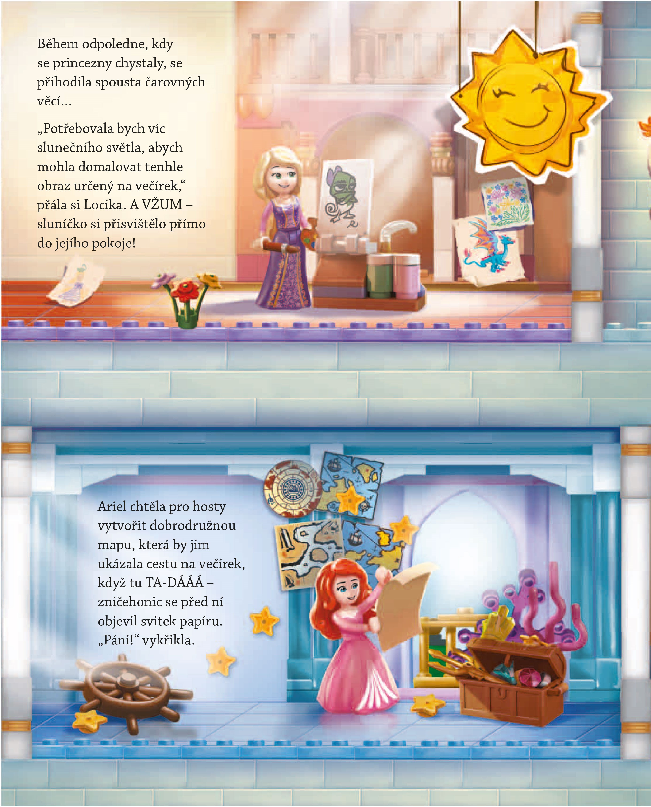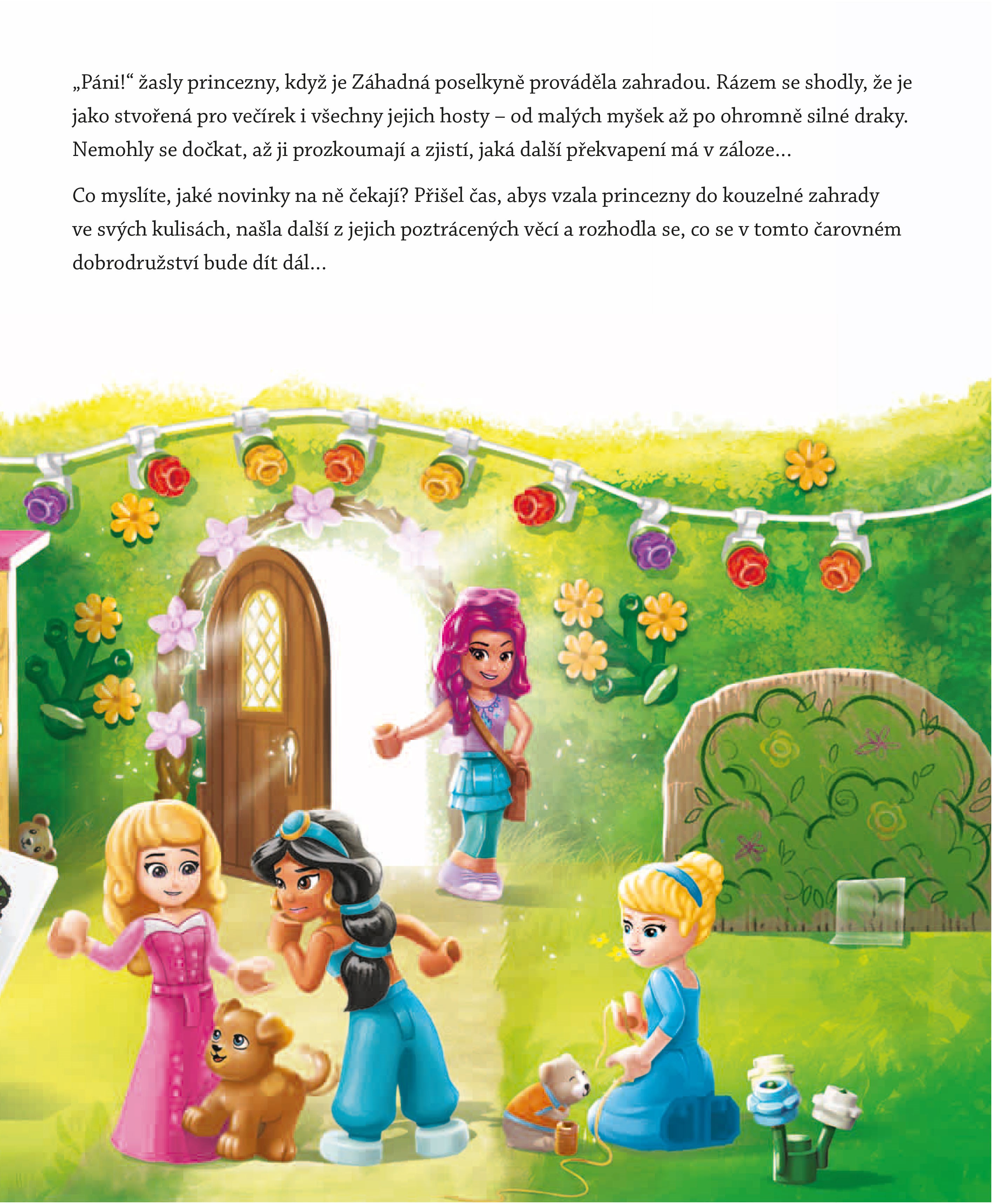 Vstup přímo do světa LEGO® Disney Princezen™ a hraj si s nimi v záhadné zahradě, která se ti po otevření knížky rozprostře přímo před očima. A to doslova, protože obsahuje třírozměrné kulisy, v nichž se odehrává příběh, který si v knize přečteš. Můžeš si ho tak zahrát a dokončit podle svých představ přímo se svými minifigurkami. Je jen na tobě, jak se všechno odehraje. Popusť uzdu své fantazii a přidej se k princeznám v jejich světě – už na tebe netrpělivě čekají!