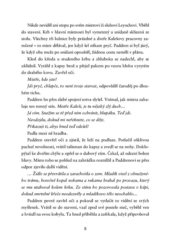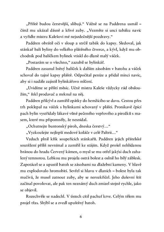 Pátrání je zavede na strastiplnou cestu plnou nájemných zabijáků, sekt a nestvůr stvořených krvavou magií. Ale Paddrena nic nezastaví. Vize, které ho spojují se vzpomínkami dávno mrtvého čaroděje, jsou klíčem k rozluštění mnoha hádanek. A on je hodlá vyřešit.