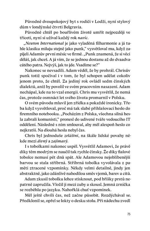 Adam je elitní právník londýnské firmy Newton International. Má vše, co život dokáže nabídnout. Díky účinku stříbrných tobolek však zjistí, že v jeho perfektní paměti je mezera. A v jeho životě ještě větší.