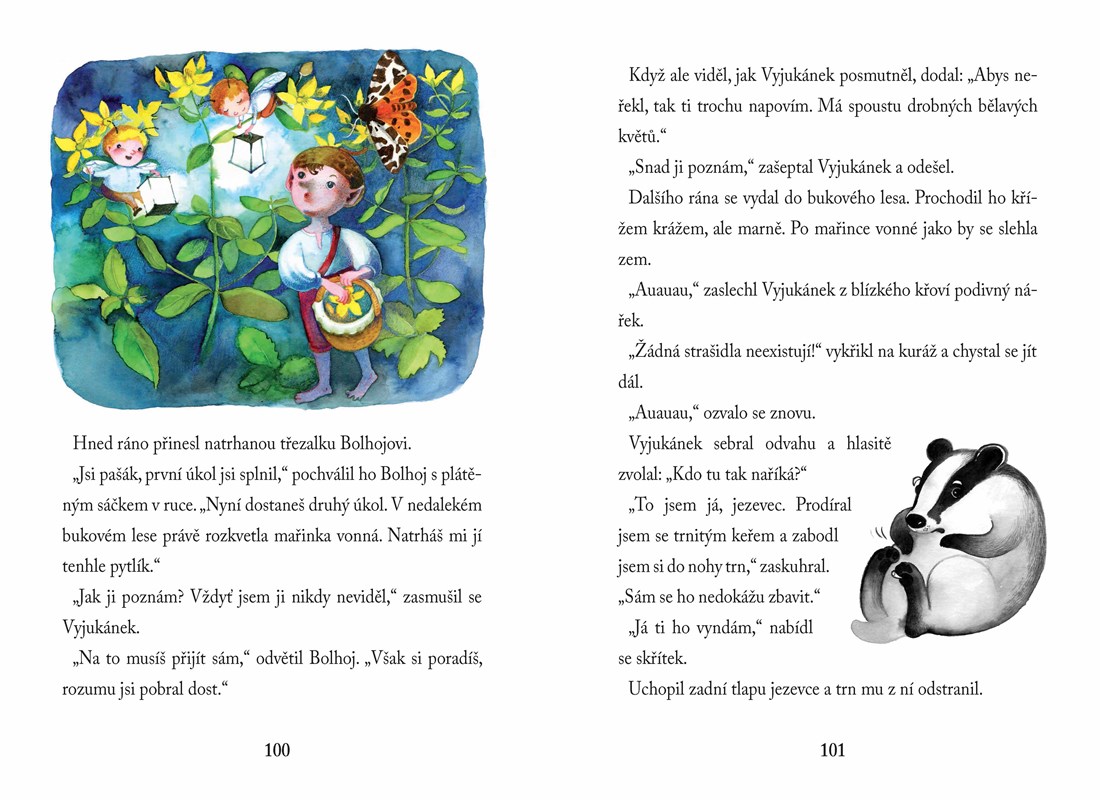 Lesní skřítkové jsou různí, mají všelijaké vlastnosti a návyky, trampoty, mnozí pilně pracují, ale někdy i lumpačí. A tak se mezi nimi najdou vzteklouni, bručouni, bázlivci, skrblíci, zvědavci či posměváčci. Ale jen jeden umí vyléčit bolístky, nešvary a smutky – od toho má i jméno: Bolhoj. Tenhle skřítek má svou knihu kouzel, ale používá ji málokdy. Častěji si vezme k ruce herbář a podle něj připravuje léčivé lektvary, mastičky nebo čaje. Kdokoli navštívil jeho chaloupku u starého dubu, odešel s medicínou i dobrou radou. A protože Bolhoj není lakomý, nabízí malý atlas léčivých bylin, stromů i keřů i vám.