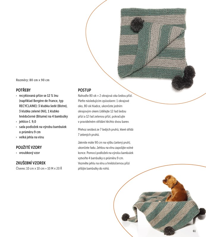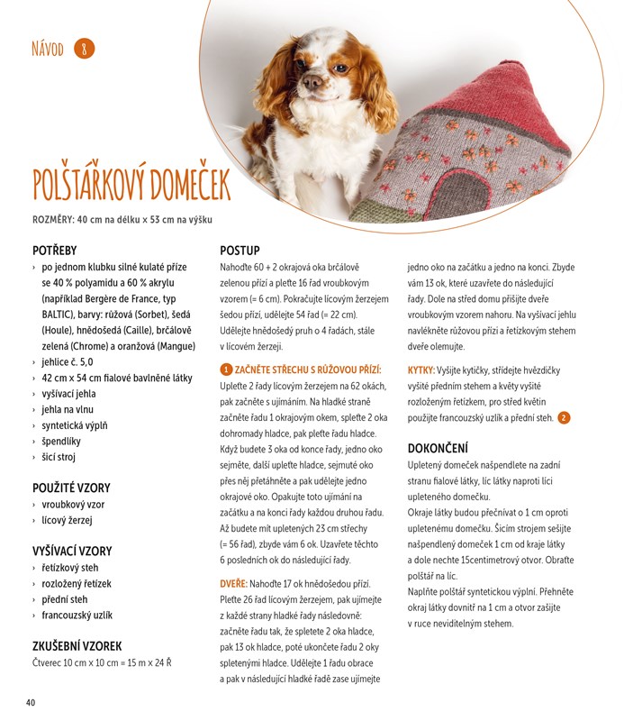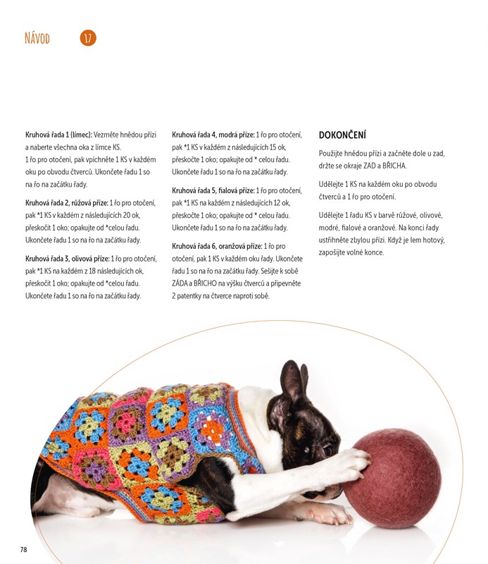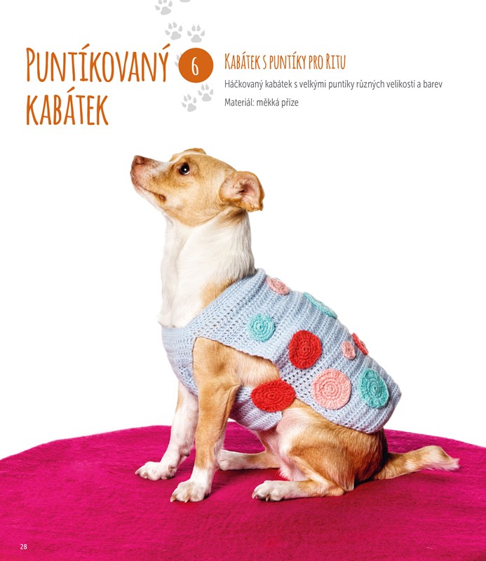 Každý z projektů je doplněn podrobným postupem a ukázkovou fotografií a je uvedena i orientační velikost výsledného kousku, takže jednotlivé modely lehce přizpůsobíte přesně na míru svému pejskovi.