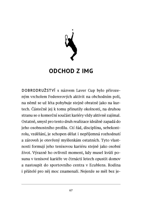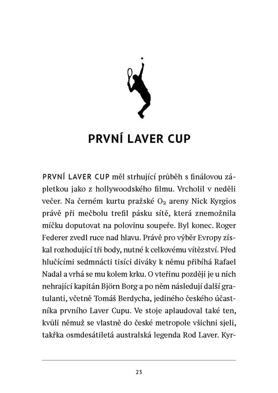 Roger Federer. Hvězda, která zásadně ovlivňuje bílý sport skoro dvacet let. Jeho schop¬nost adaptovat se na nové trendy ve vybavení, taktice, ale i na mladší soupeře, odhodlané a zatím nezatížené jeho silou neporazitelného šampióna, zaslouží obdiv.