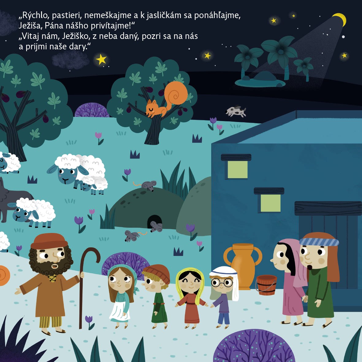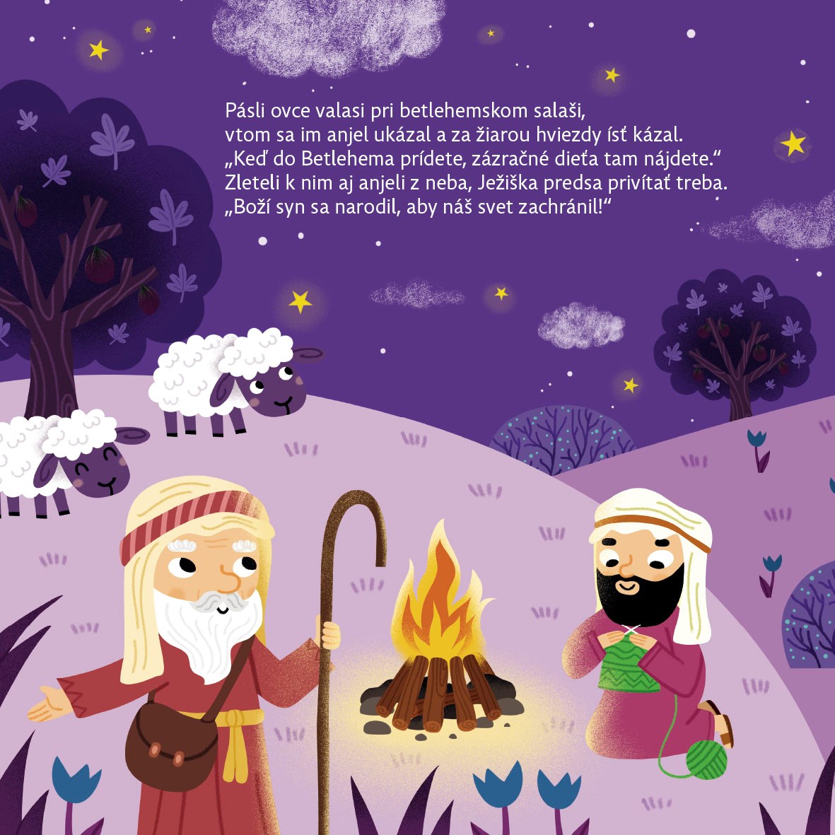 V tejto knižke je vyrozprávaný príbeh narodenia Ježiška, vo veršoch pre tých najmenších. Deti sa potešia aj z množstva obrázkov a okienok, za ktorými môžu objaviť veľa prekvapení.