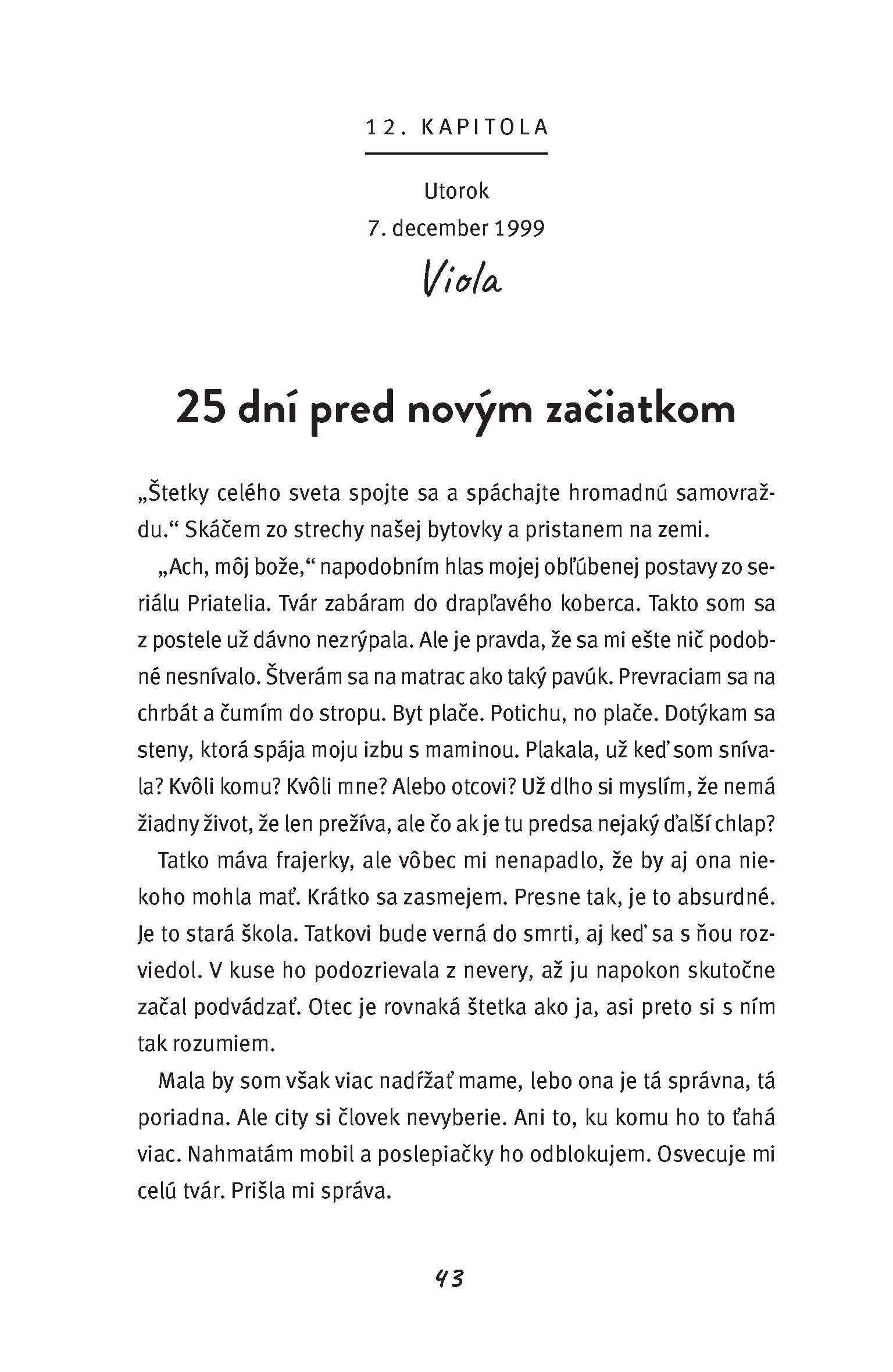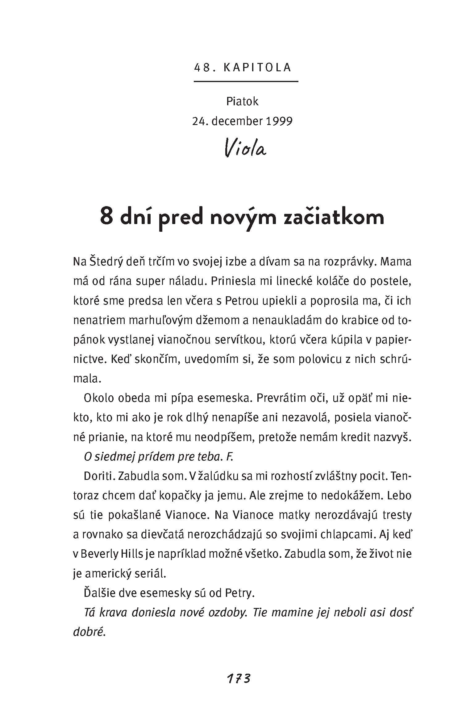 Prepojenie Violy a Fredyho som odhalila hneď. Asi som bola na rovnakej vlnovej dĺžke ako spisovateľka. Toto ma sklamalo. Bolo to pre mňa také evidentné, no na druhej strane som sa mohla viac sústrediť na iné fakty a rozpoznávať signály, ktoré by som si pri prvom čítaní obyčajne nevšimla. Zdalo sa mi, že vidím viac za oponu a dokážem dané situácie hodnotiť komplexne. Niektoré rozhodnutia majú totižto siahodlhé následky. Minulosť, ktorá zasahuje do prítomnosti a budúcnosti zároveň. Nie je to strašidelné? No podstatné je, že po búrke vyjde slnko a každý má aj v bezvýchodiskovej situácii štipku nádeje. Tak je to aj s postavami v tomto príbehu. Nie je však niekedy nádej tá najnebezpečnejšia vec, ktorú máme? Vec, ktorá sa s nami rada zahráva a potom je všetko inak? Bez nej by sme ale nedokázali existovať. To, ako to dopadlo v prípade Fredyho a Violy, sa dozviete, ak si prečítate túto young adultku, ktorá nie je určená len pre mladých dospelých, no práve na nich môže mať ten najväčší vplyv.