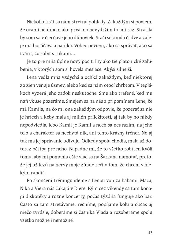 Čo sa týka Mirkinej tvorby, Nepobozkanú môžem porovnávať len s knihou Stálo to za to. V tomto prípade bol príbeh o trochu slabší, alebo skôr predvídateľnejší. Väčšina vecí dopadla tak, ako som očakávala, no aj napriek tomu som si príbeh užila. Určite najzaujímavejším boli prípravy na stužkovú. Sama som si tým nedávno prešla a tak ma kniha vrátila k spomienkam práve na tú moju. Pre starších čitateľov táto časť určite vyvolá veľa sentimentu, tých mladších zasa zaujme niečo nové a neznáme a snáď ich to aj prinúti tešiť sa na svoj čas na strednej škole. Okrem toho je prevažná časť príbehu venovaná vzťahu dvoch hlavných postáv, o čo práve v tejto knihe šlo. Ich vzťah alebo skôr zaľúbenie sa mi páčilo, všetky city išli postupne a nie zhurta, ako to v niektorých romantických knihách býva. Šarkan si musel Dominiku získať, keďže pre ňu bolo ťažšie veriť chlapcovi, ktorý bol starší ako ona. Pre niektorých môže vyzerať dvojročný rozdiel ako nič, ale pre stredoškolákov to naozaj predstavuje veľa. Predsa len sú štvrtáci už dospelí ľudia, ktorá myslia na iné veci a majú iné povinnosti ako ich mladší spolužiaci. Sama som tento rozdiel na strednej vnímala a preto sa mi páči, ako ho autorka vystihla.