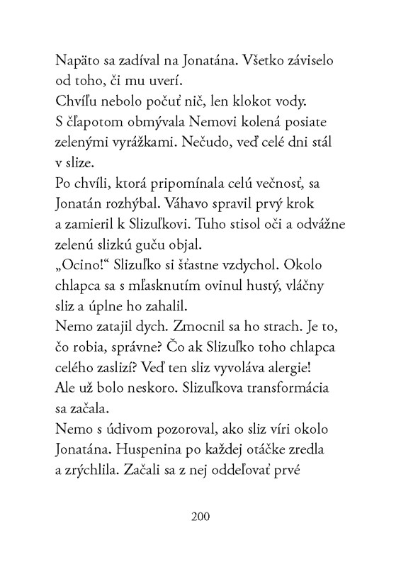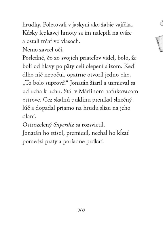 Písmenká v knihe sú väčšie. Vhodné preto aj na precvičovanie čítania. Kniha je vhodná pre deti od 8 rokov. A hoci ide o sliz, ktorý poprdkáva (čo určite poteší hlavne chlapcov), tak sa bude kniha páčiť aj dievčatám. Navyše v knihe nájdete aj niekoľko ilustrácií, ktoré má aj tentokrát na svedomí Fréderic Bertrand.
