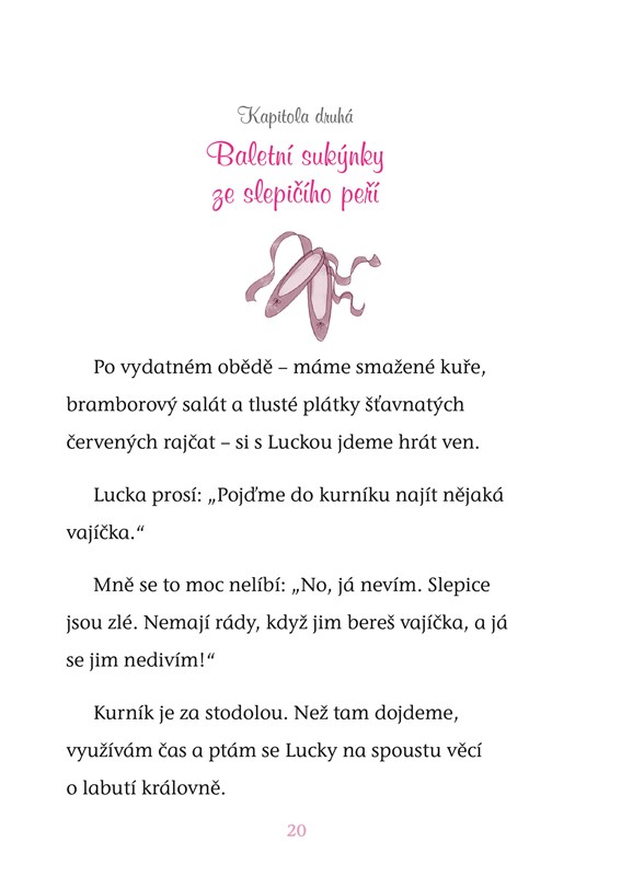 Úplně ze všeho nejvíc chci být baletkou. Takže když se dozvím o konkurzu na Labutí jezero, je mi jasné, že je to pro mne báječná příležitost. Nemůžu se dočkat, až budu tančit jako primabalerína. Balet bude určitě perfektní, vím to. Však počkejte a uvidíte!