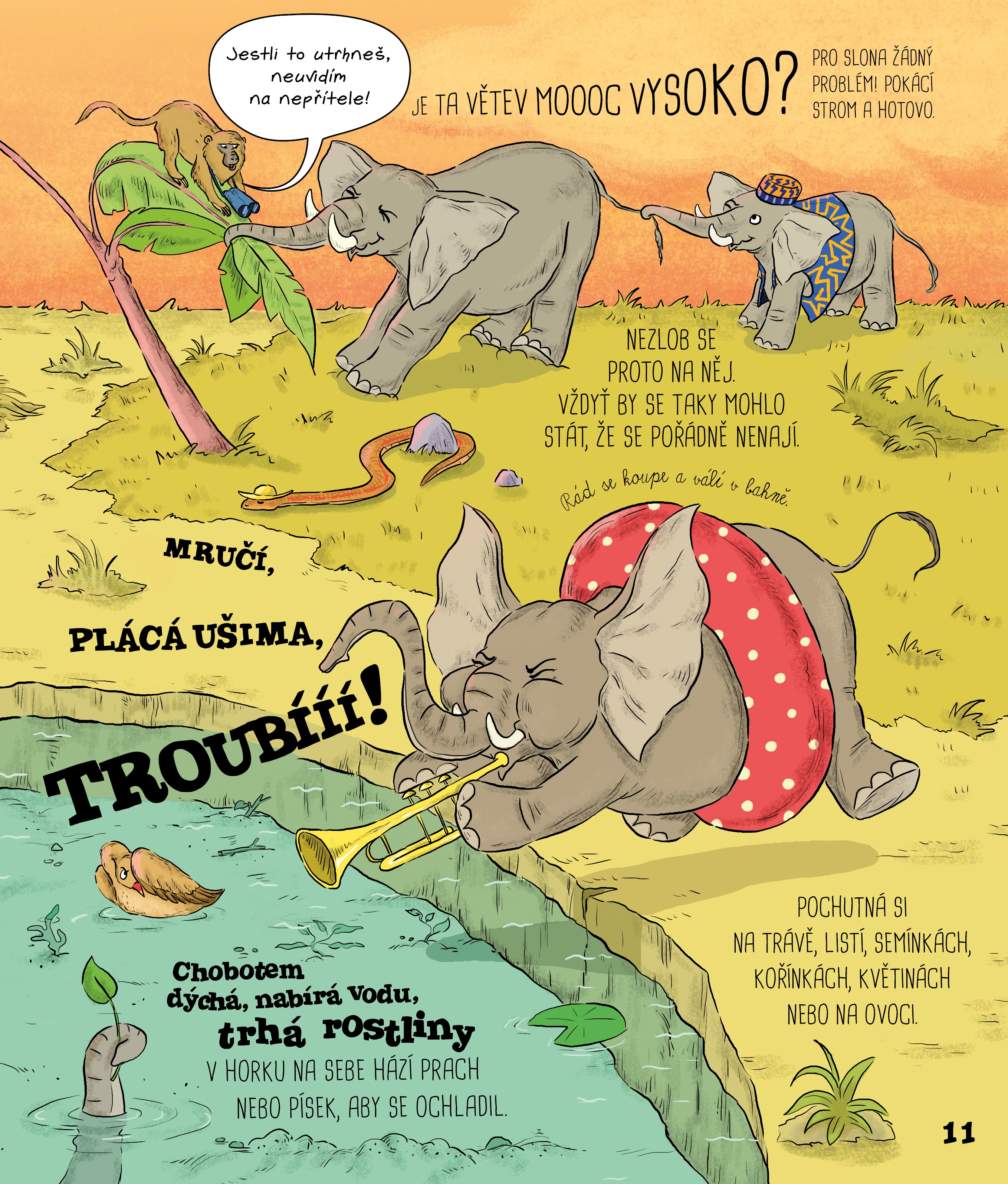 Vypadá jako něco mezi bobrem, kachnou a vydrou, a navíc nemá žaludek. Chudák ptakopysk! Copak asi žere? Určitě toho nespořádá tolik jako slon, který může sežrat za jediný den až tři sta kilogramů potravy. Jen pro tvou představu, tolik váží třeba tři čerstvě narozená slůňata. Svět zvířecích jedlíků je skutečně podivuhodný. Nahlédni do něj se svou první obrázkovou knížkou o zvířatech a zjisti, jak zvířata jedí.