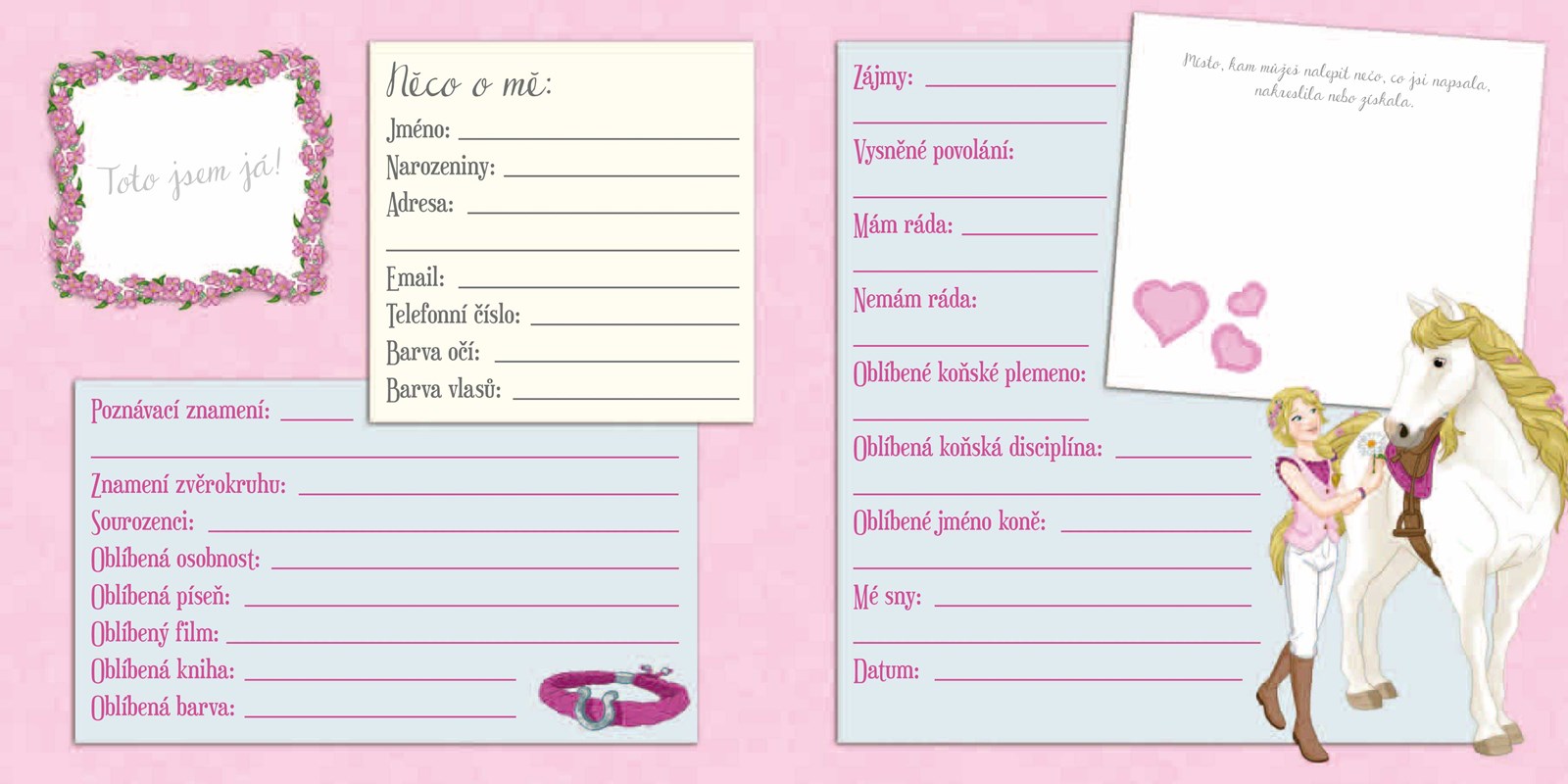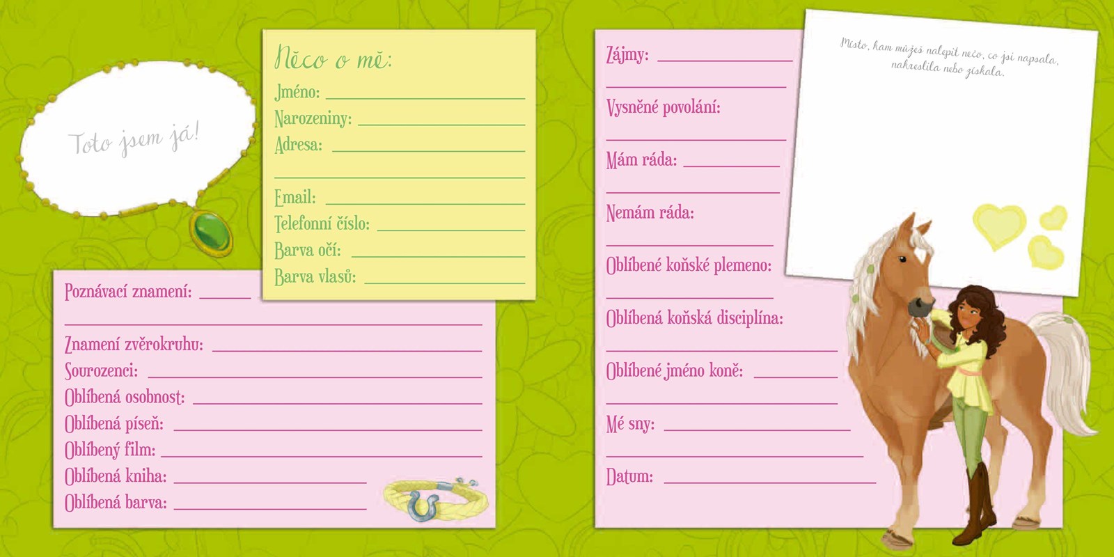 Vepiš do této kouzelné knížky svá nejtajnější tajemství a popros své kamarádky, aby učinily to stejné. Budete je pak mít všechny pěkně pohromadě. Pak si přečti o holkách ze spolku Horse Club a zjisti o nich vše potřebné. Staneš se tak jejich kamarádkou!