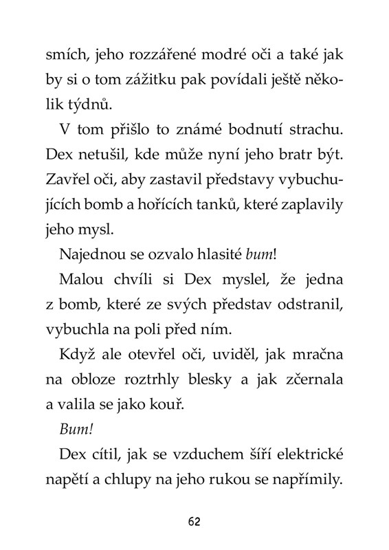 Dex samozřejmě ví, jak nebezpečná mohou tornáda být, tohle však nemíří na Joplin a bude jistě úžasné mít nějaký vzrušující zážitek, který povypráví Jeremymu, až se vrátí domů. Směr tornáda se ale změní a Dexe čeká životní zkouška statečnosti…