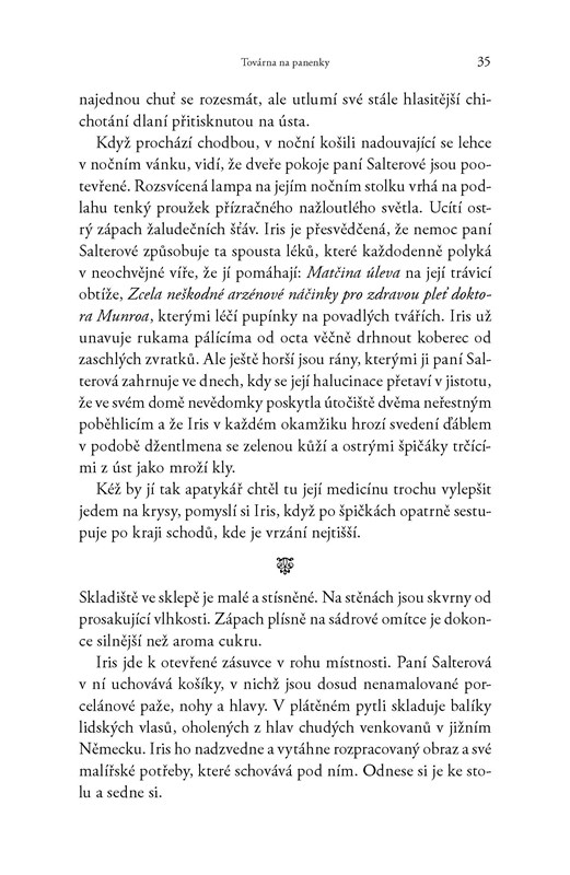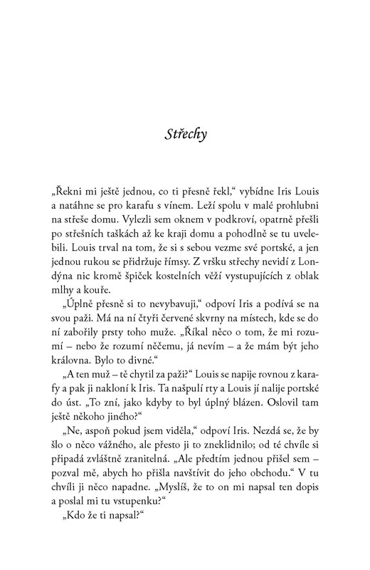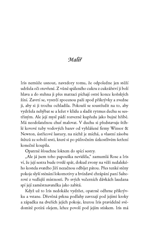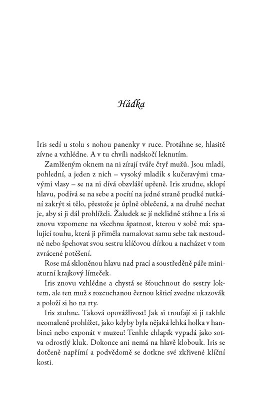 Londýn 1850. Iris pracuje v továrně na panenky. Silas sbírá kuriozity a vycpává zvířata. Oba se potkají při největší události ve městě, budování Hyde Parku. Iris na setkání hned zapomene, ale Silasovi změní život. Poté co Iris souhlasí, že se stane modelem mladého malíře Louise Frosta, pokud ji bude učit, její svět získává nový rozměr a naplňují ho umění a láska. Jenže Silas od setkání myslí jen na ni a jeho posedlost je stále temnější…