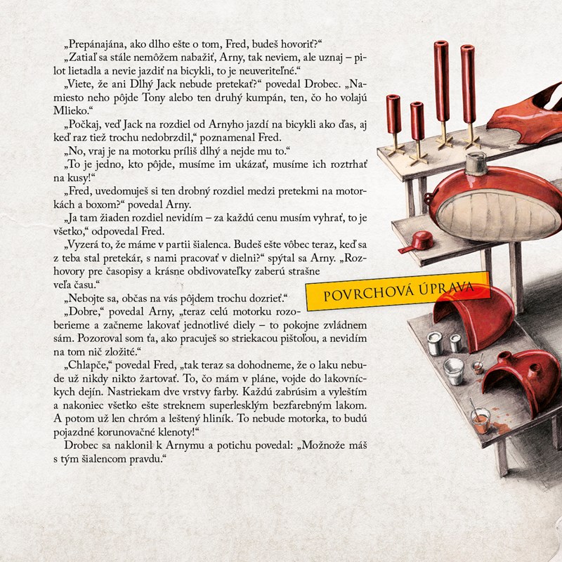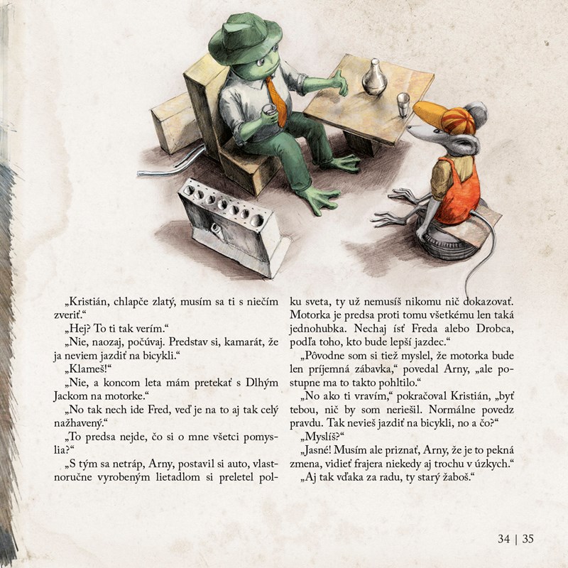 Je začiatok jari a z ďalekého juhu sa vlastnoručne vyrobeným lietadlom vracajú traja odvážni cestovatelia – potkan Arny, vrabčiak Zíla a žabiak Kristián. Cesta im dala zabrať a nové skúsenosti možno zmenili ich názor na svet. Doma však už na nich čakajú ich kamaráti Drobec a Fred, ale hlavne ďalšia výzva. Arnymu sa do ničoho nového veľmi nechce, radšej by trávil čas so svojou priateľkou Luci. Udalosti však naberú taký smer, že musí svoje plány zmeniť. Nečakané zvraty naďalej pokračujú a všetko bude nakoniec úplne inak. Jediná vec, ktorá sa v tejto knihe dá bezpečne očakávať, je, že čitateľ dostane možnosť pochopiť, ako je zostrojená a ako funguje motorka.