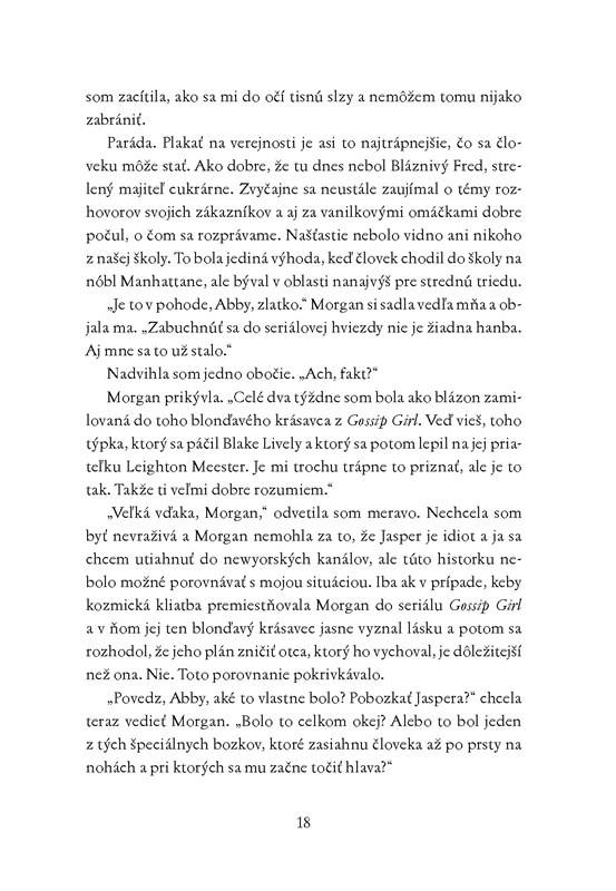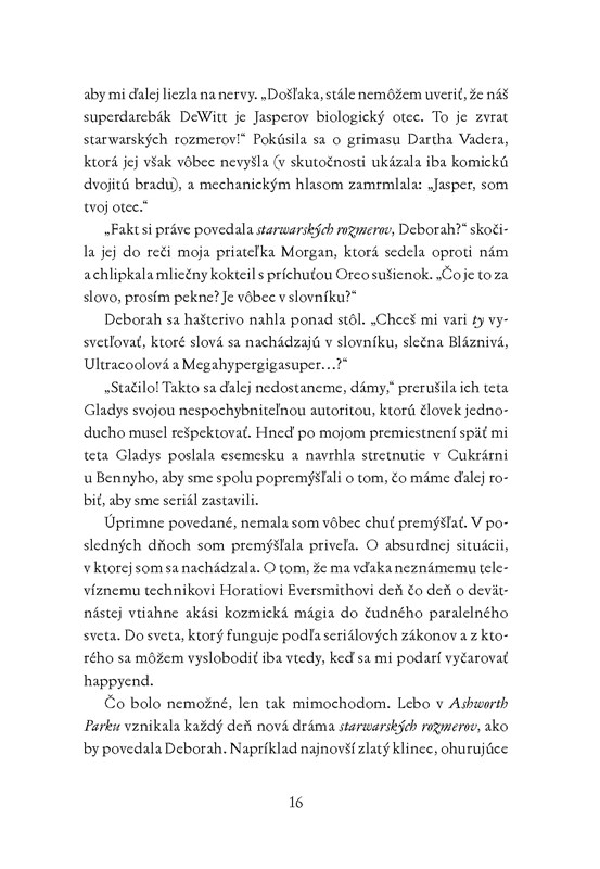Jasper je seriálová postava. Človek si predsa neplánuje budúcnosť so seriálovou postavou! Deborah navyše bozkávanie so seriálovými postavami striktne zakázala. Asi konečne nastal čas Deborah a Morgan dokázať, že som schopná zachovať si nadhľad.