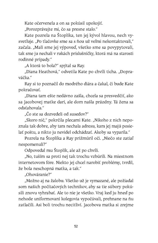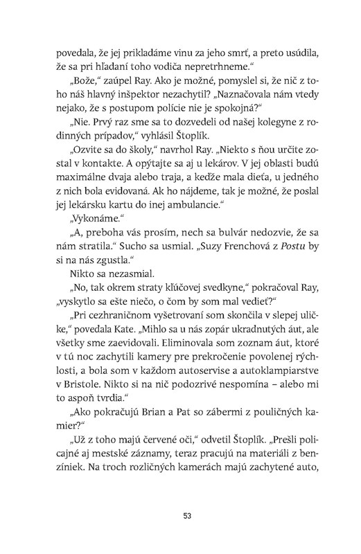 Život vyšetrovateľov mi však prišiel trošku navyše, akoby len také zbytočne zaplnené miesta, ktorým autorka chcela vdýchnuť život, urobiť z nich ľudí z mäsa a kostí, ktorí majú svoje problémy, no v deji nemali nejaký extra význam a skôr ho spomaľovali, než zrýchľovali.